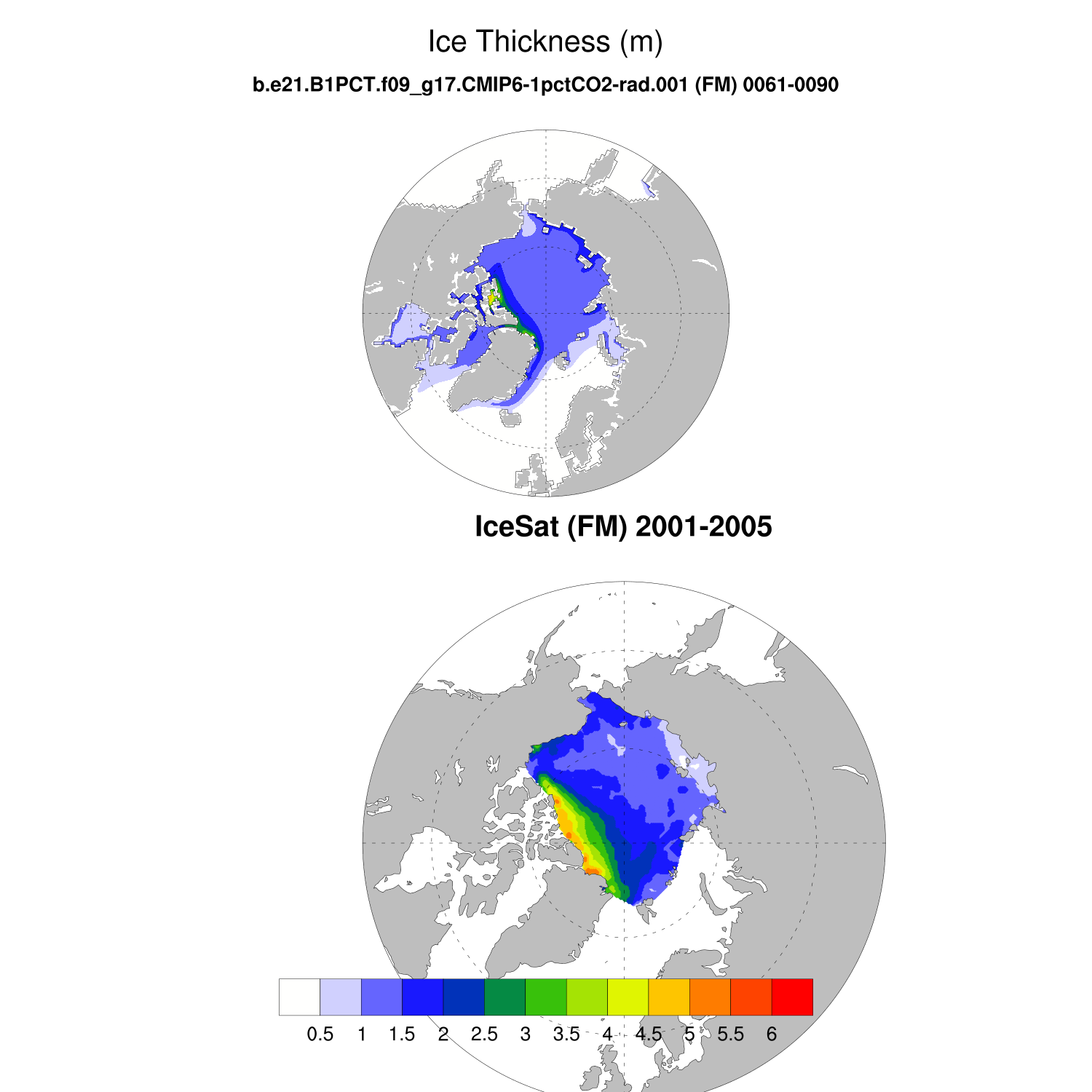 Ice Thickness vs IceSat (NH) Contour FM ON ICESat (NH) info