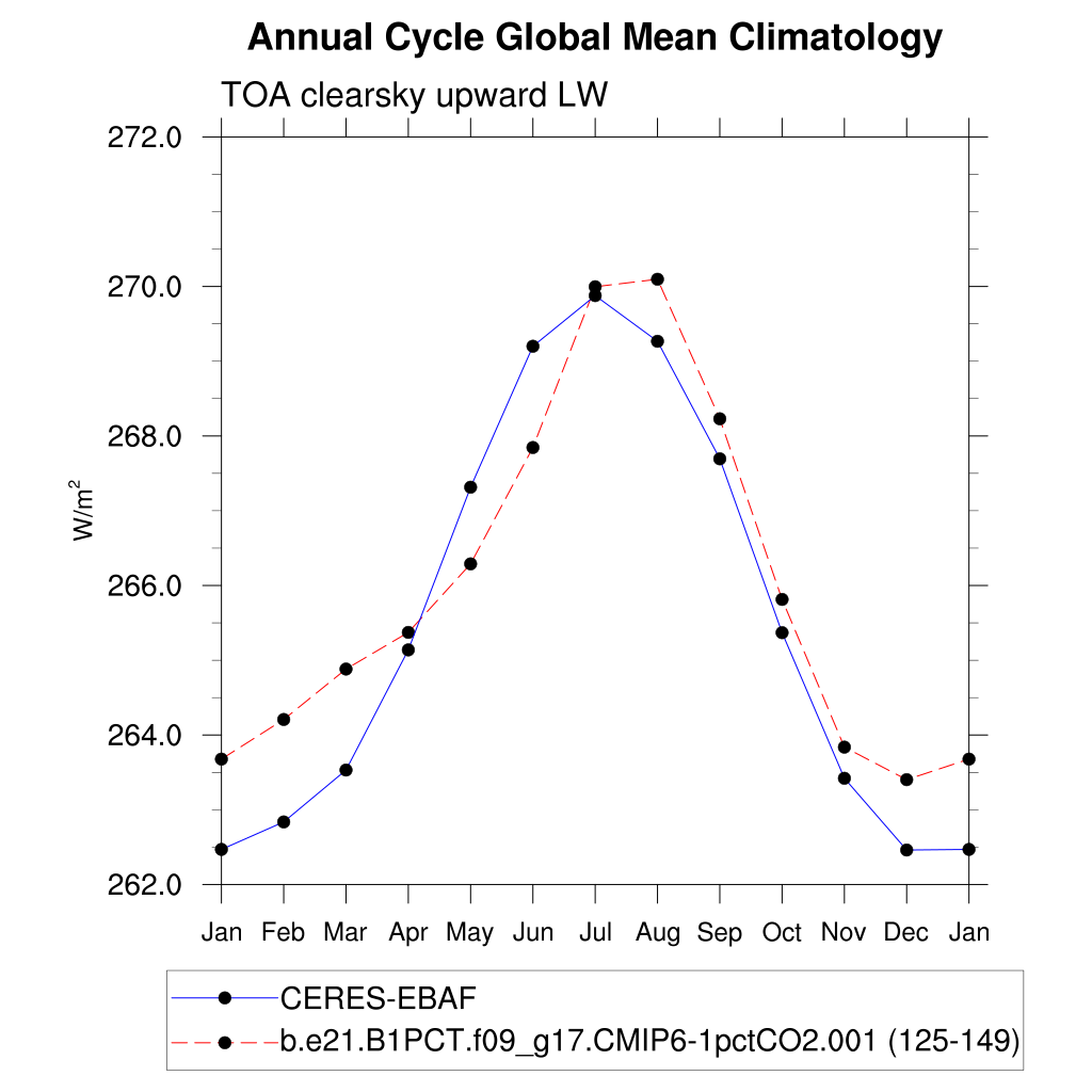 FLUTC TOA clearsky upward LW flux plot
