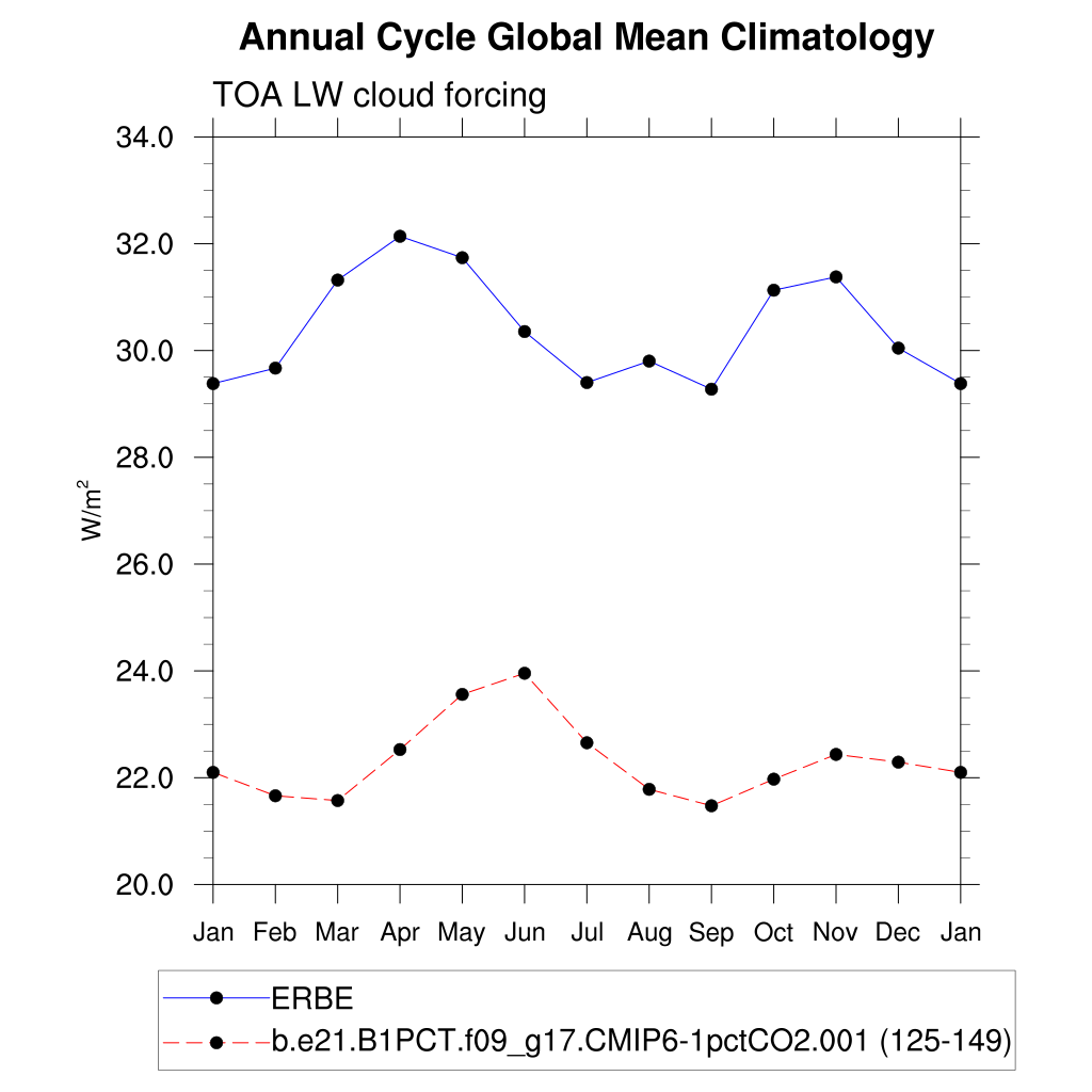 LWCF TOA longwave cloud forcing plot