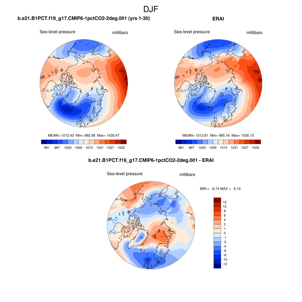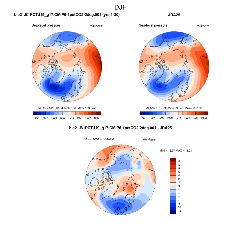 b.e21.B1PCT.f19_g17.CMIP6-1pctCO2-2deg.001DIAG Set 7 - Polar contour/vector plots of DJF, JJA and ANN means