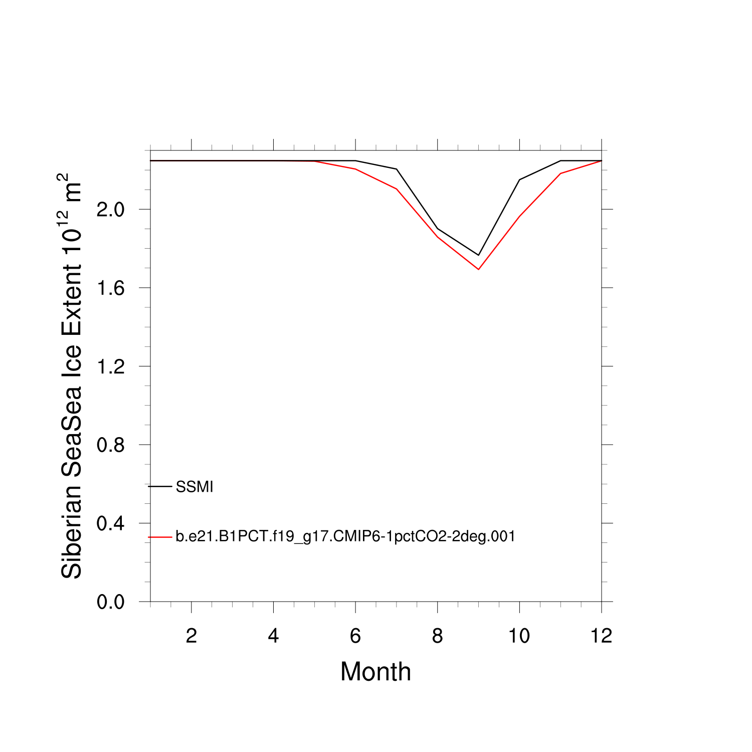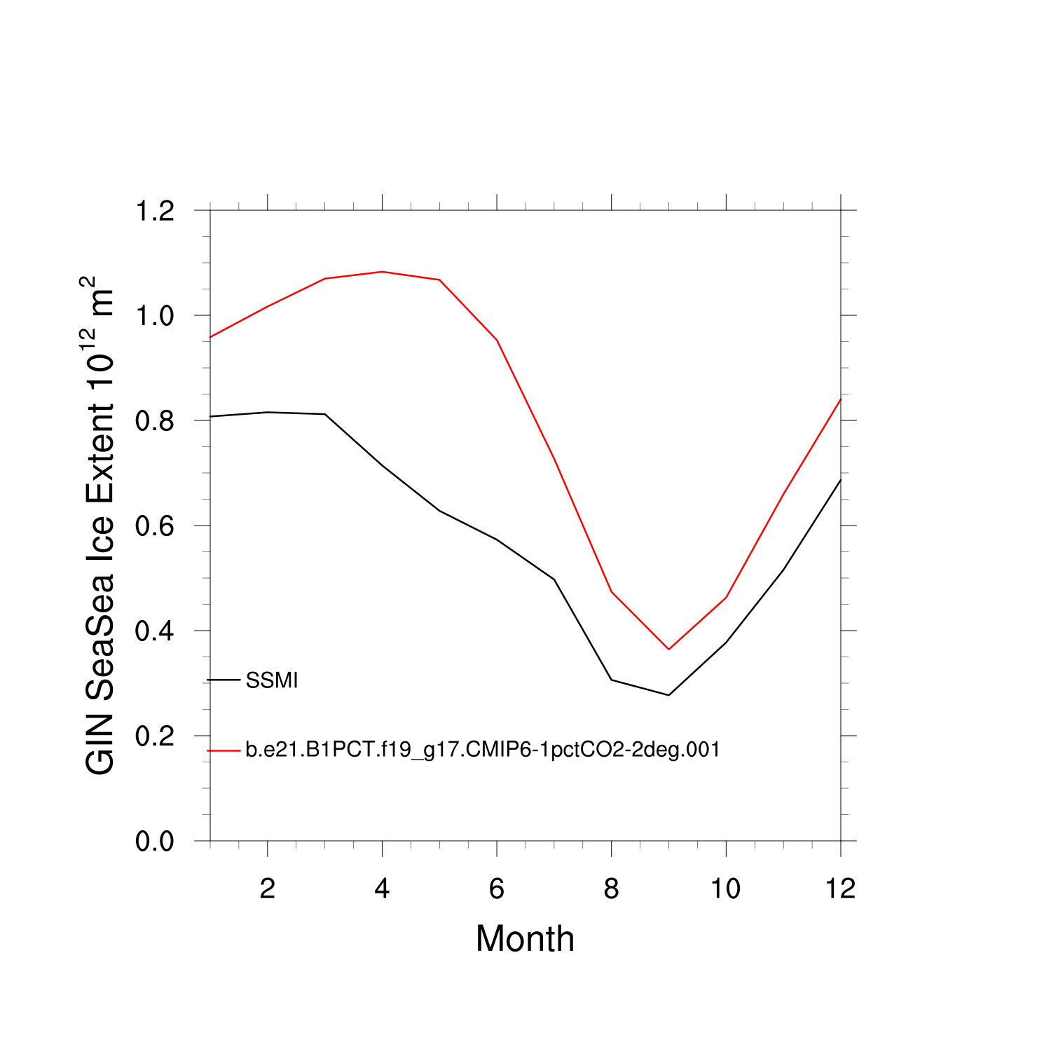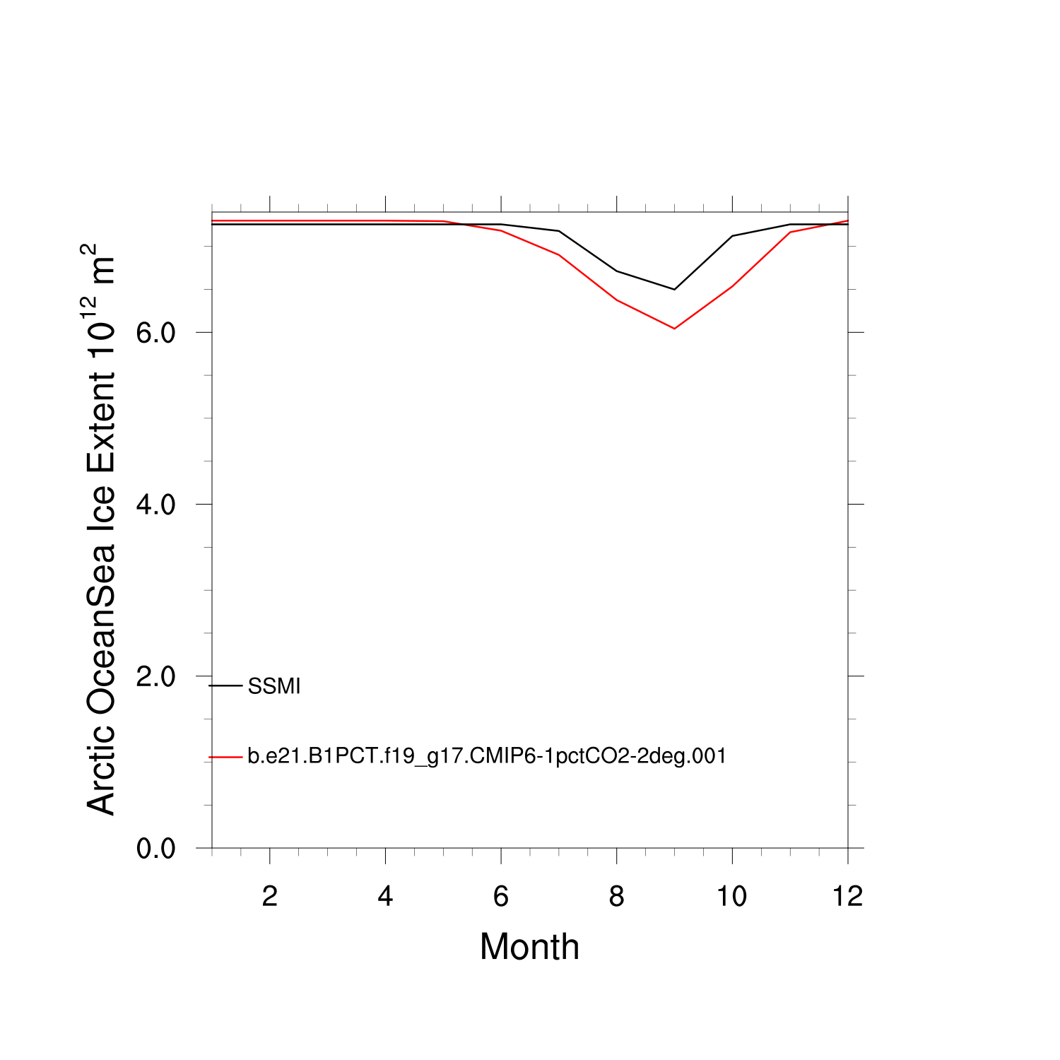 Climatological Monthly Mean Extent vs Obs plot
