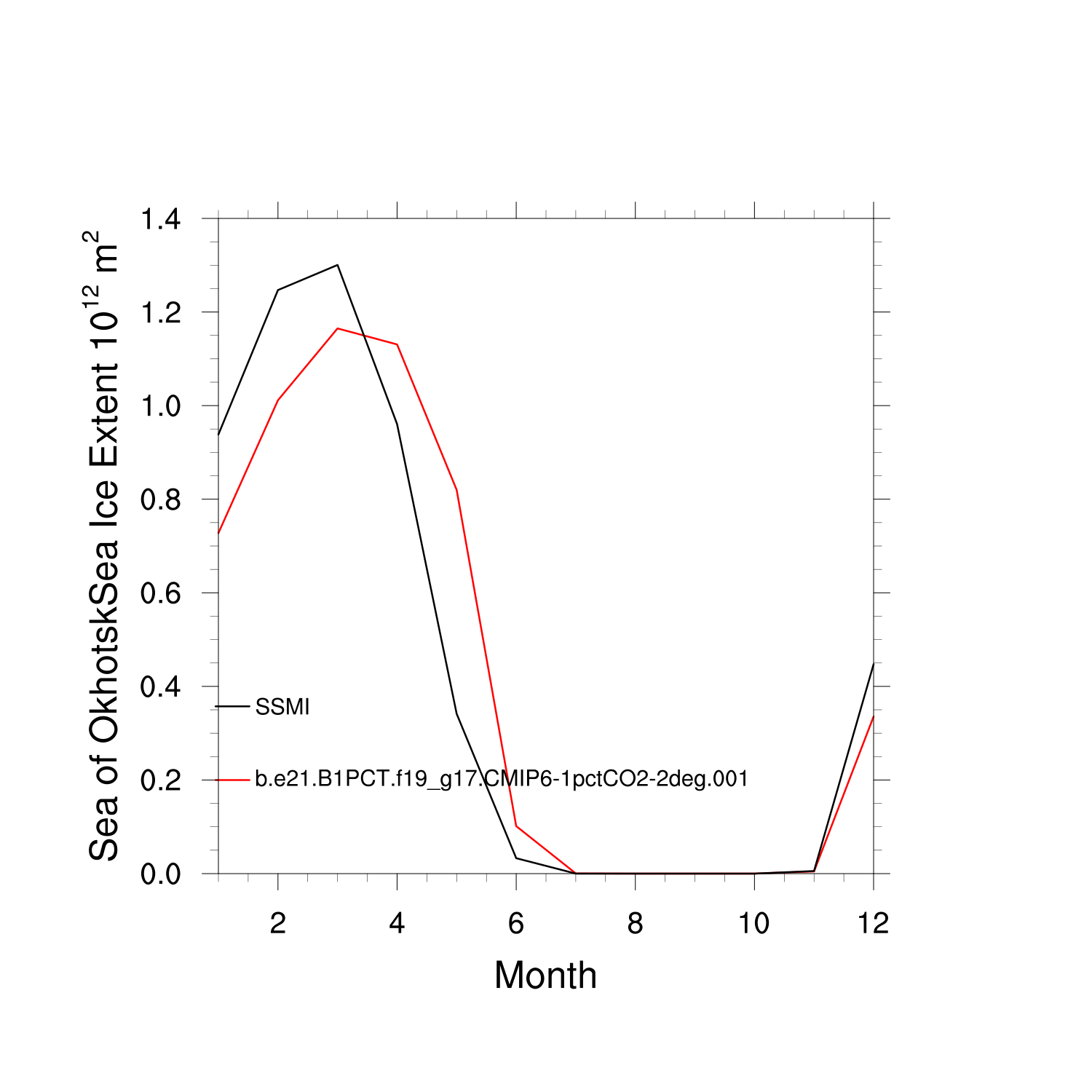 Climatological Monthly Mean Extent vs Obs plot Climatological Monthly Mean Extent vs Obs plot