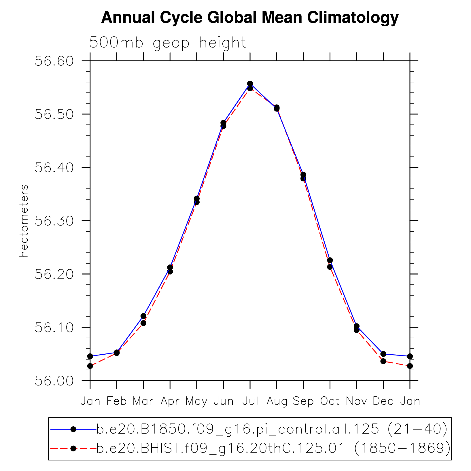 DIAG Set 10 - Annual cycle line plots of global means