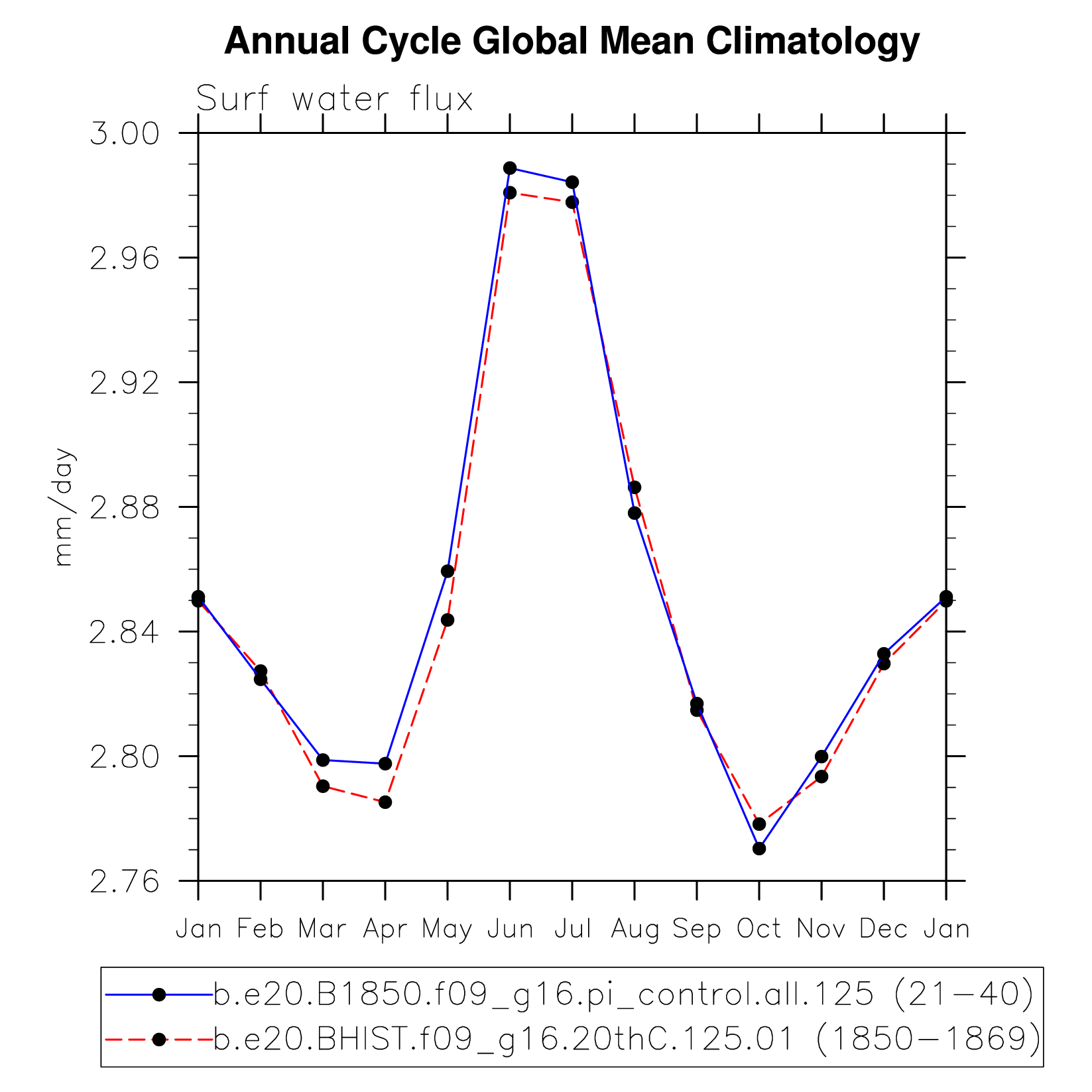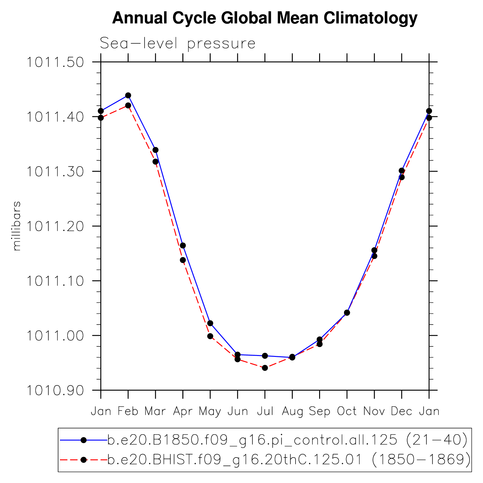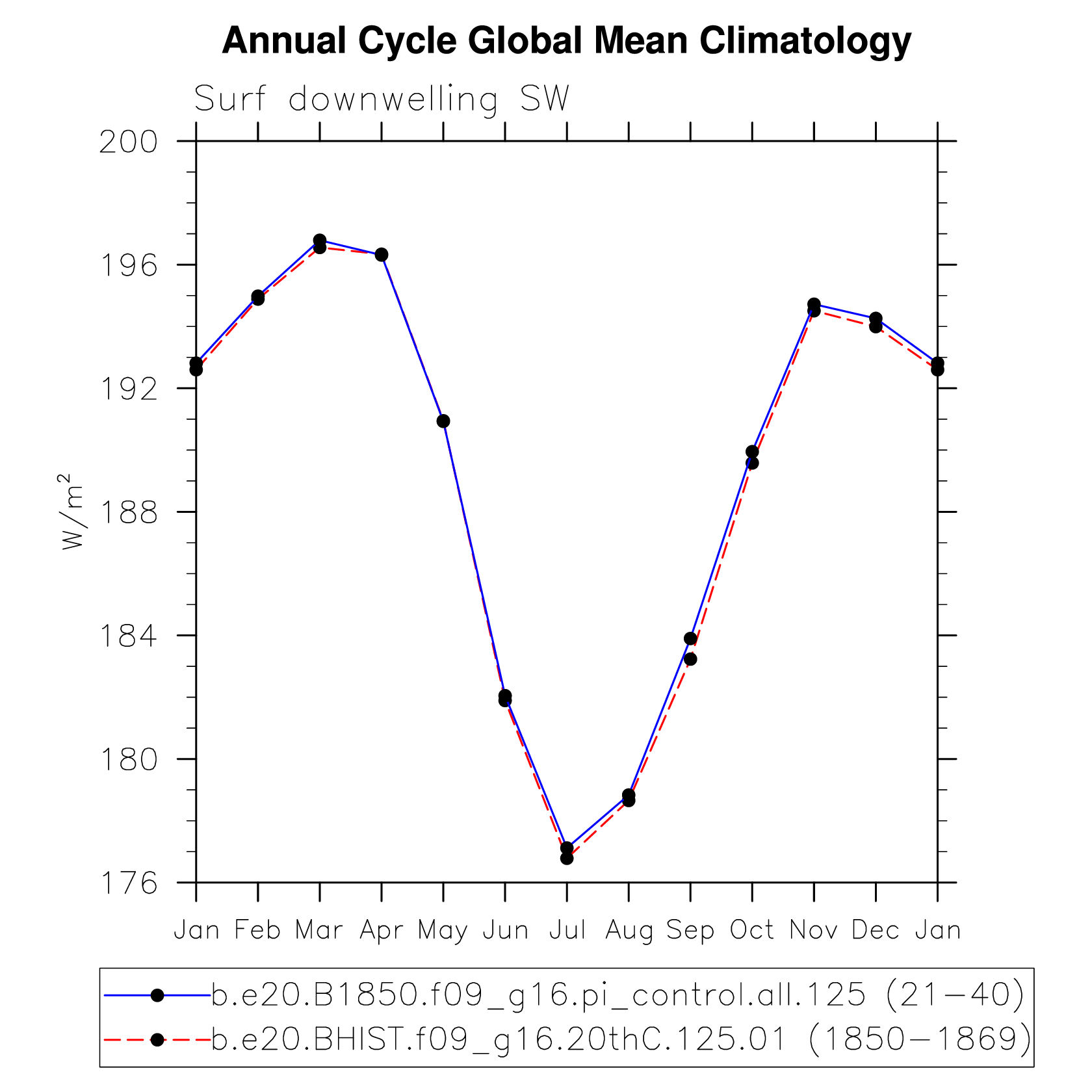 DIAG Set 10 - Annual cycle line plots of global means