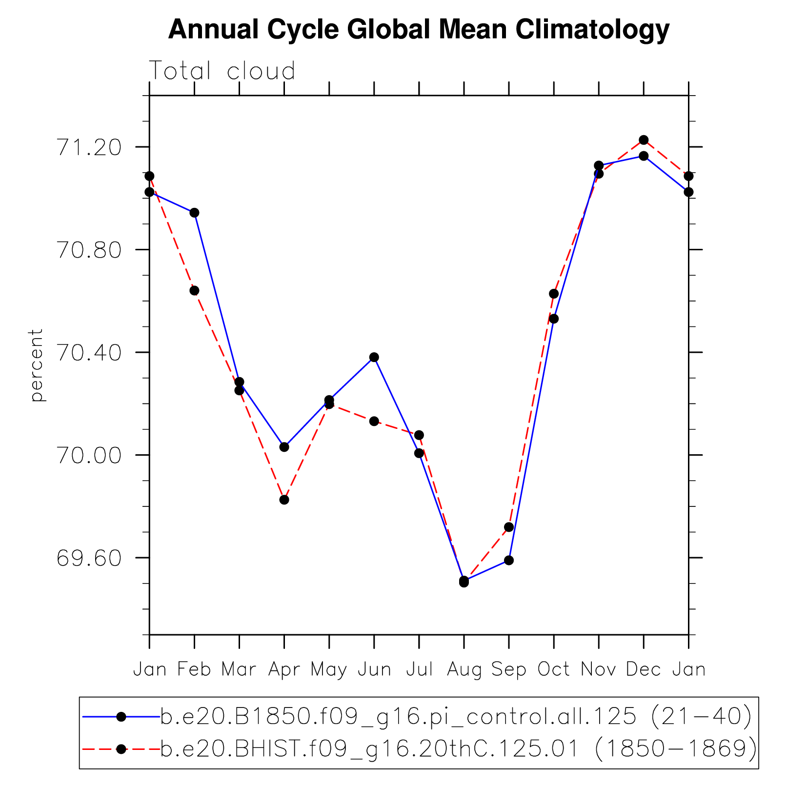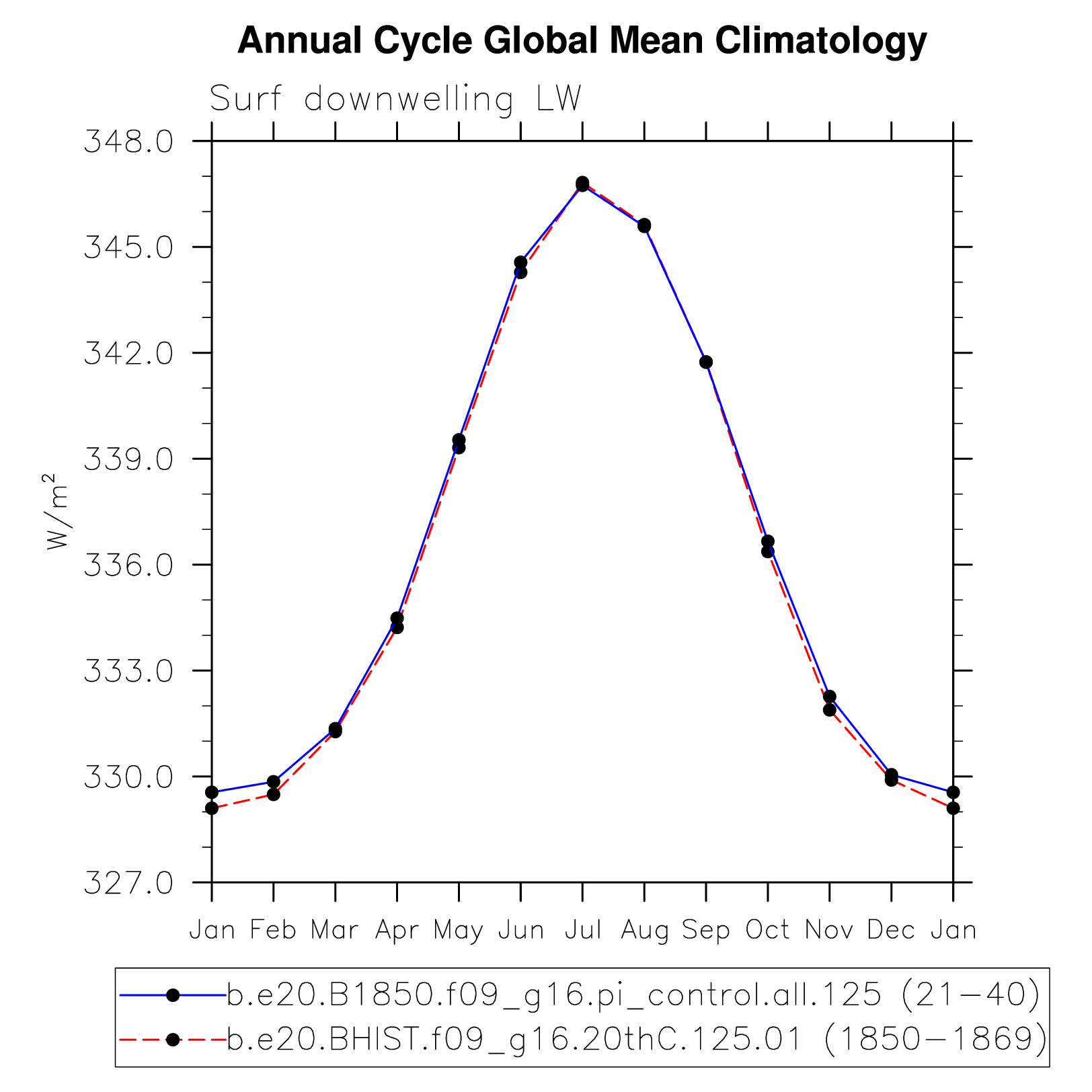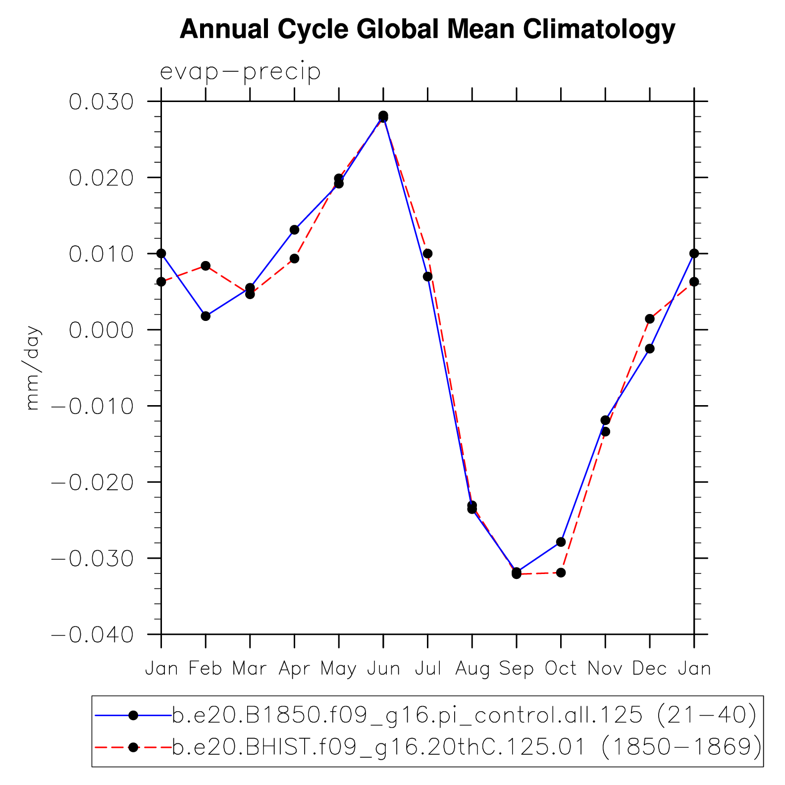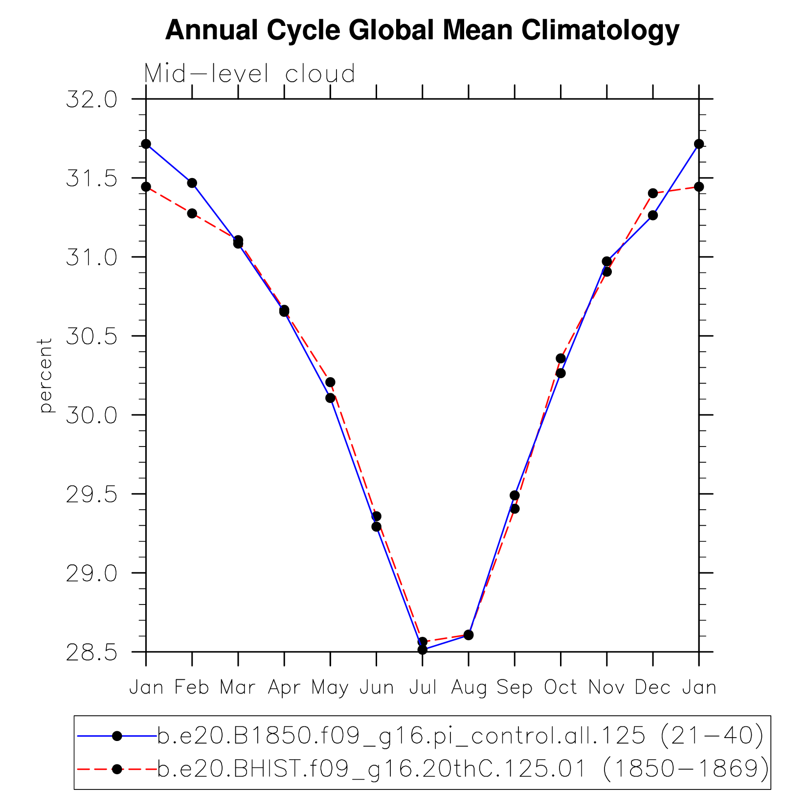 DIAG Set 10 - Annual cycle line plots of global means