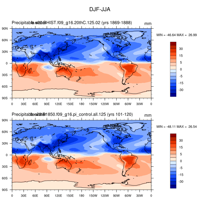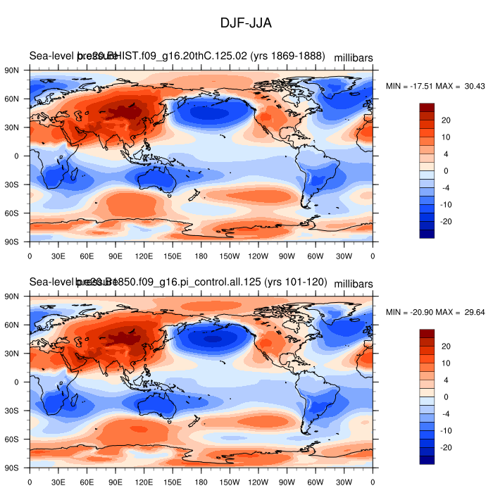 DIAG Set 9 - Horizontal contour plots of DJF-JJA differences