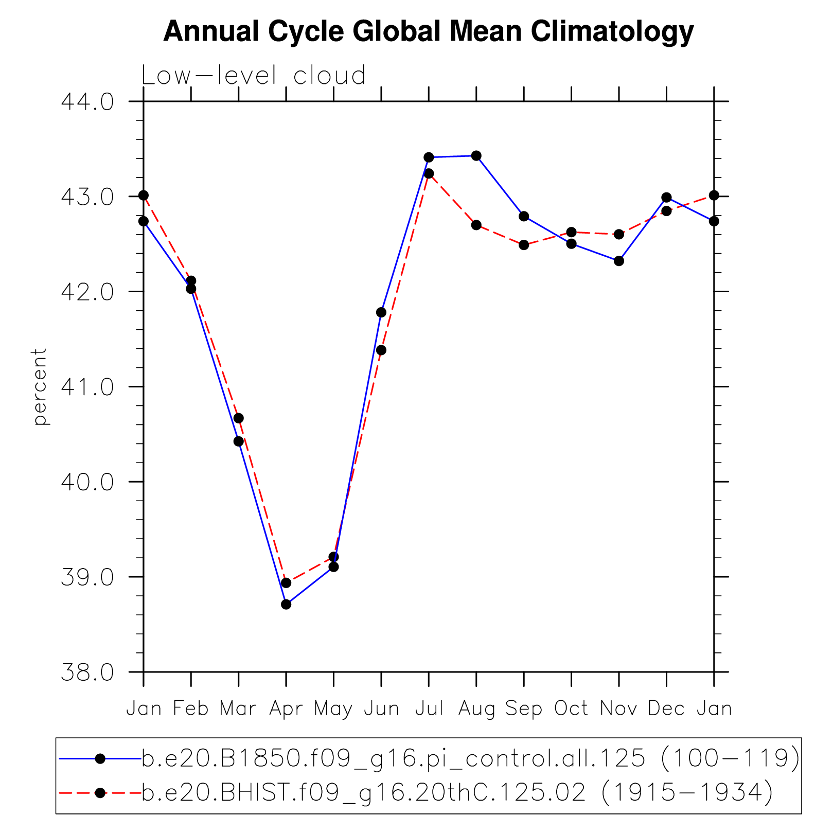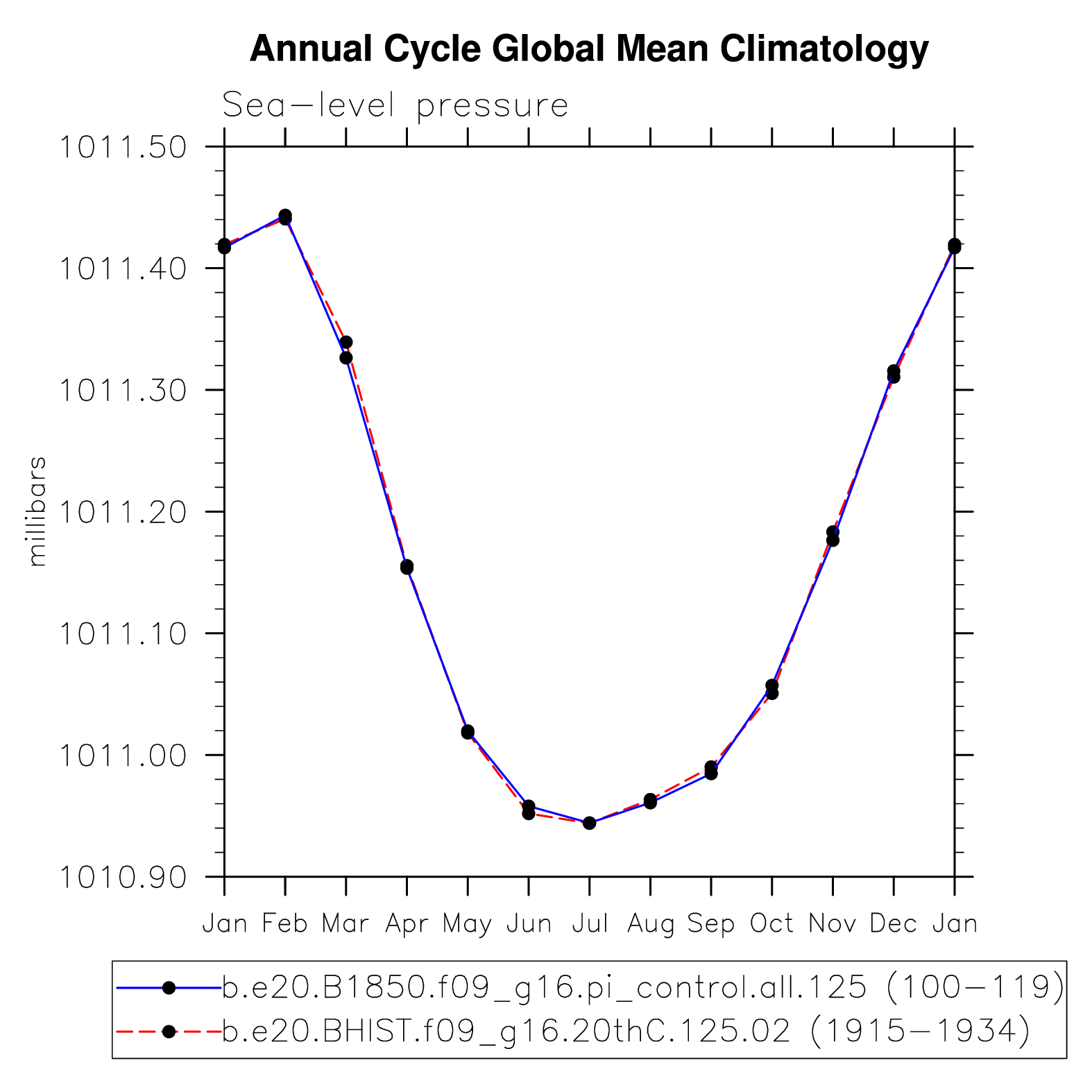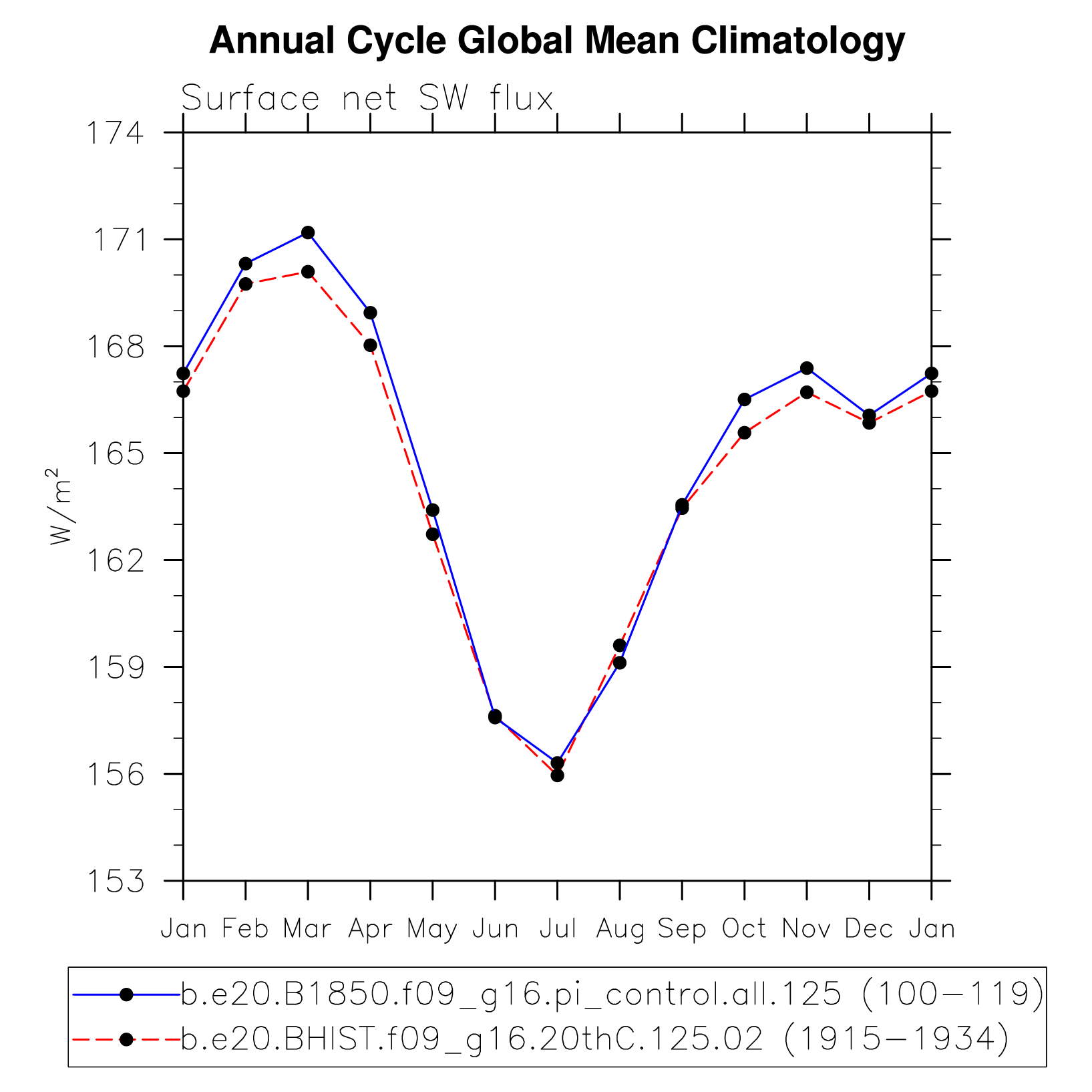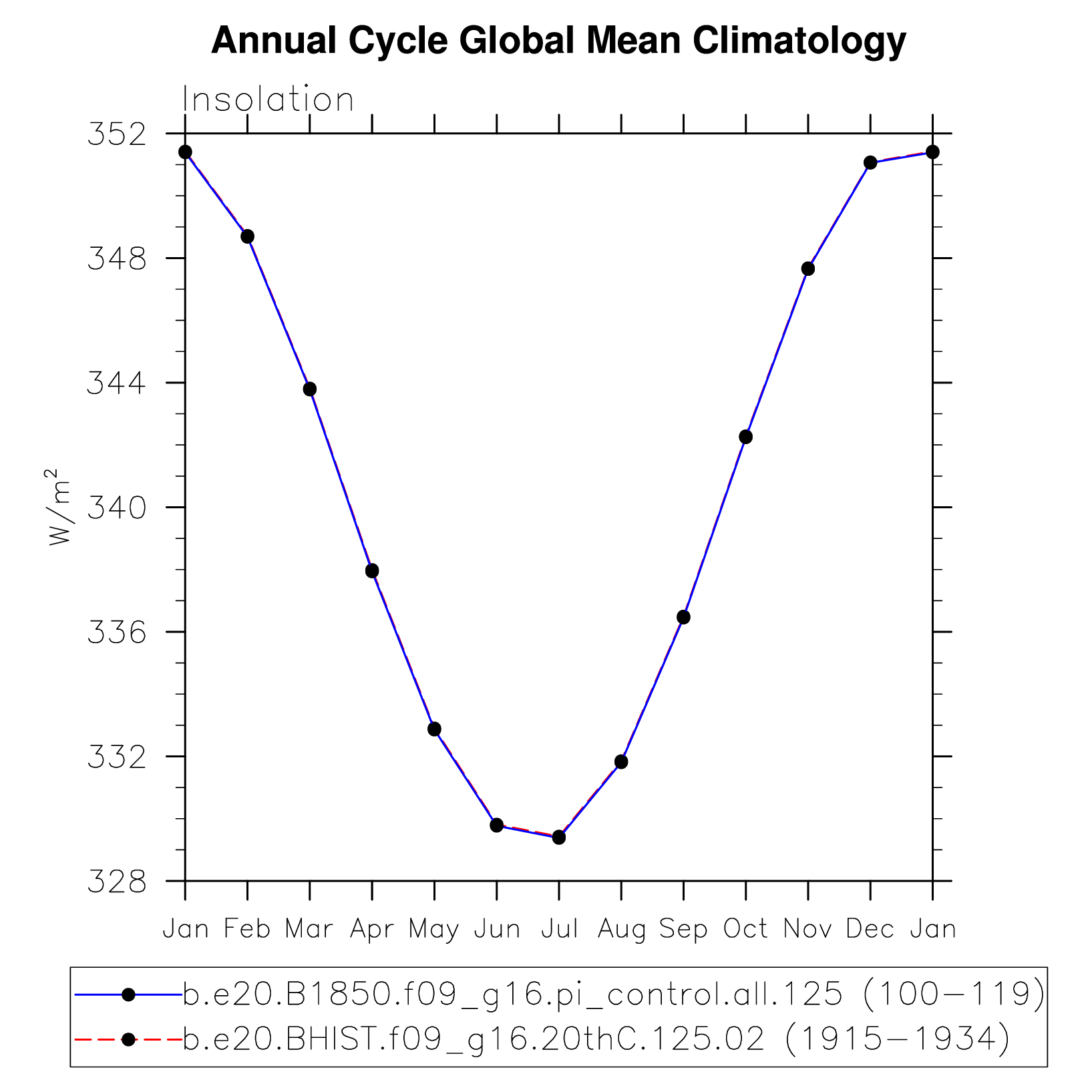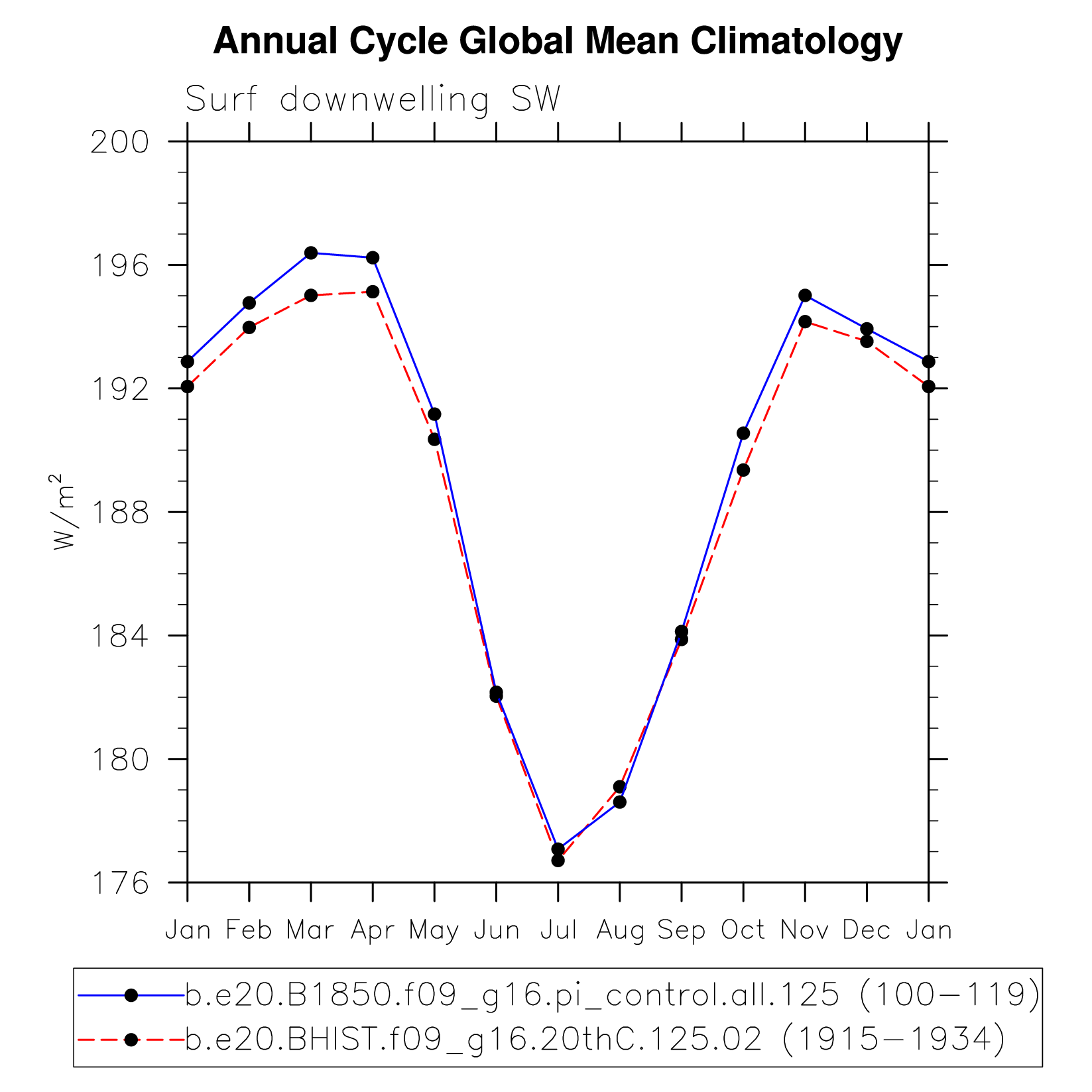 DIAG Set 10 - Annual cycle line plots of global means