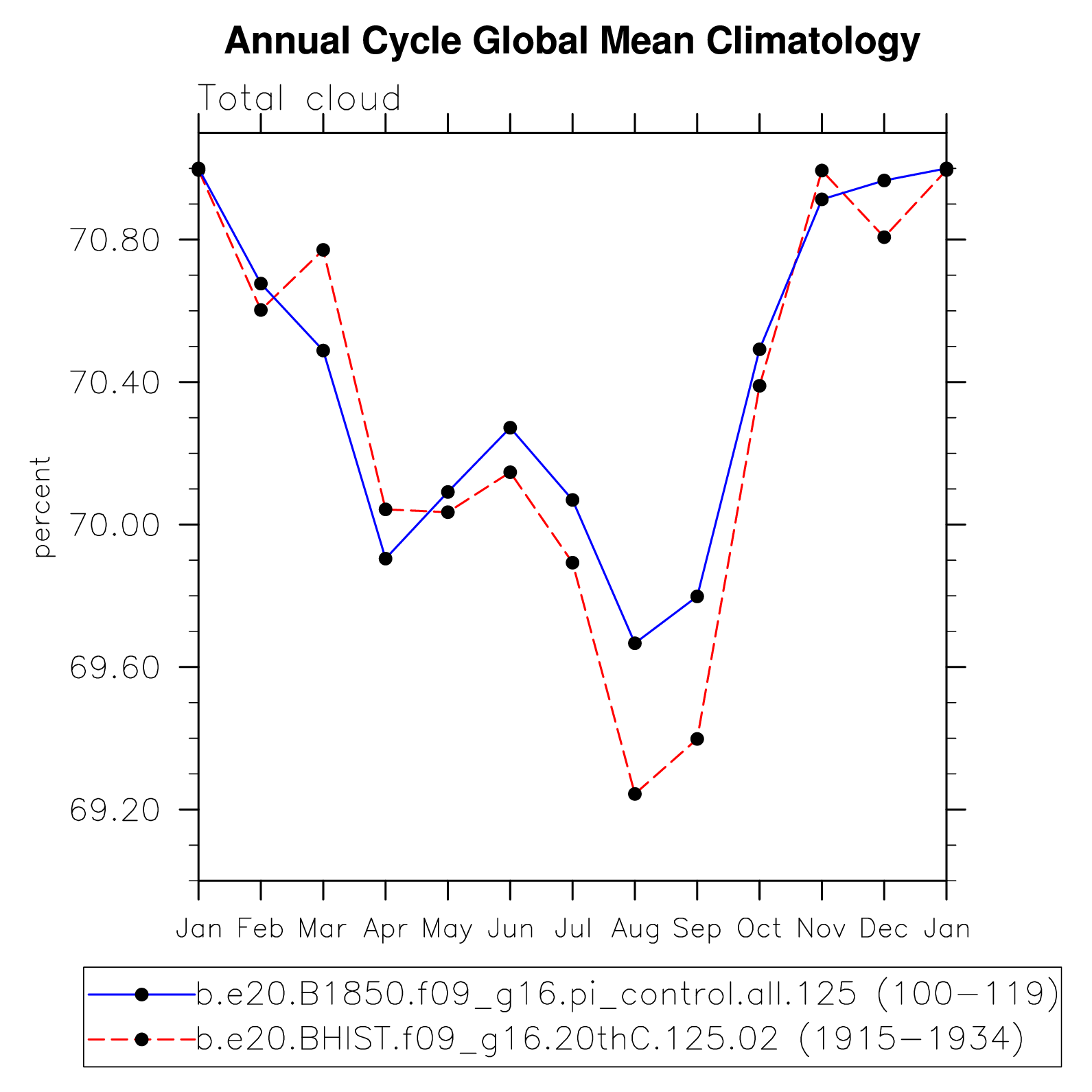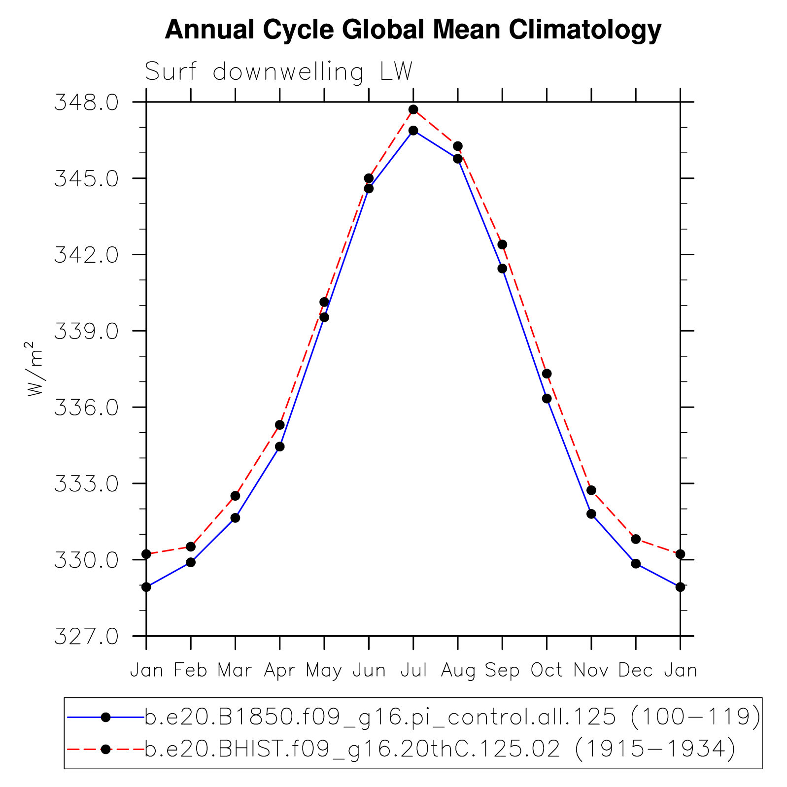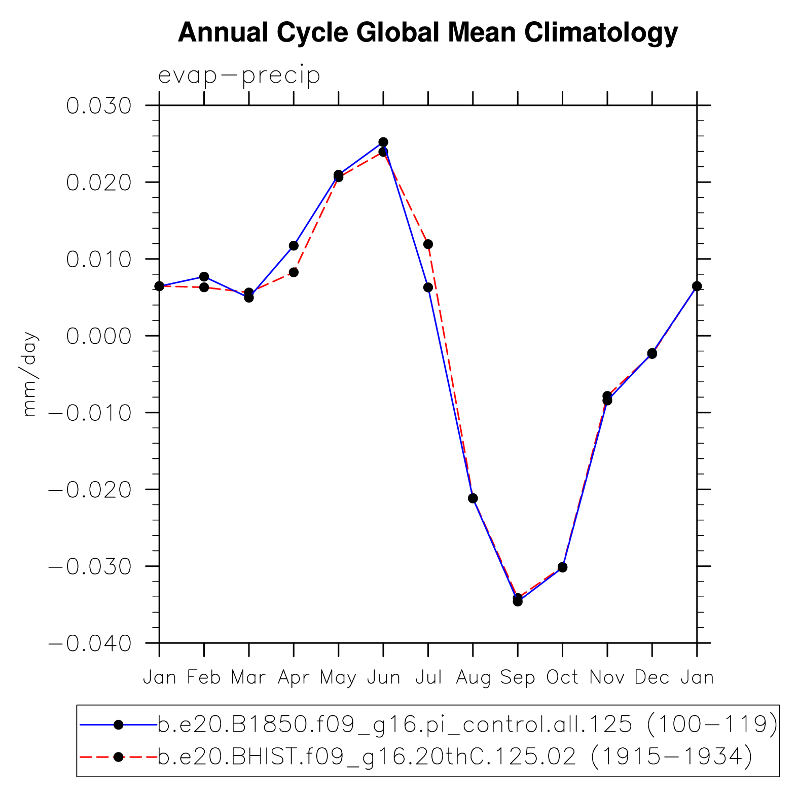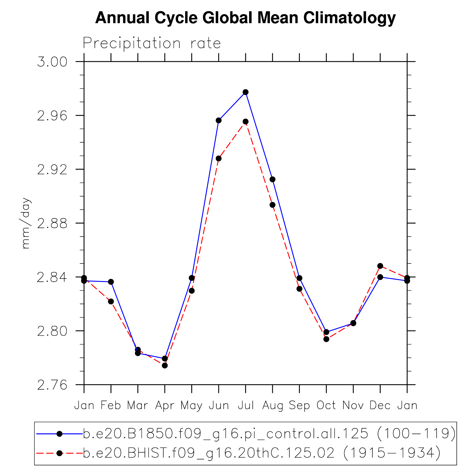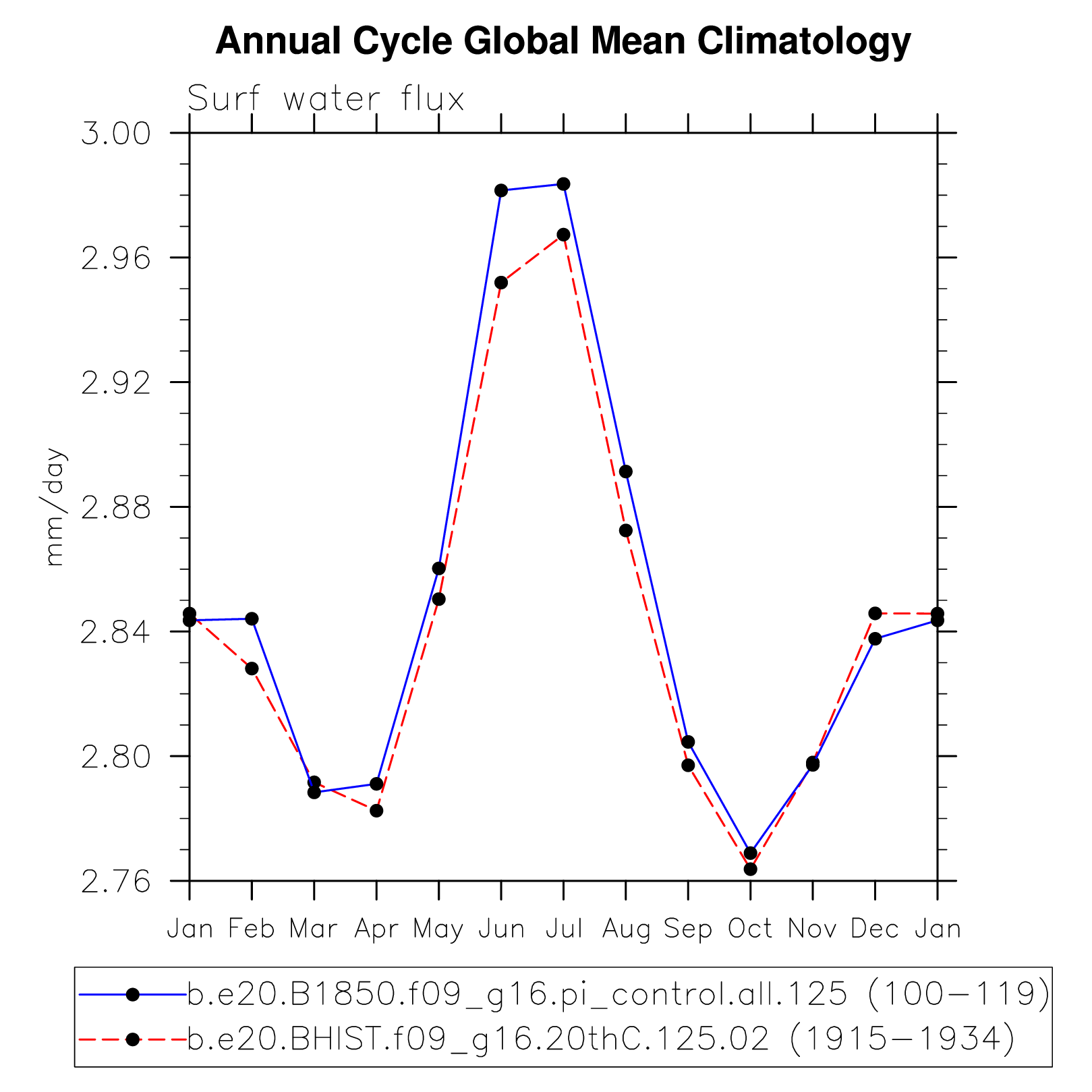DIAG Set 10 - Annual cycle line plots of global means