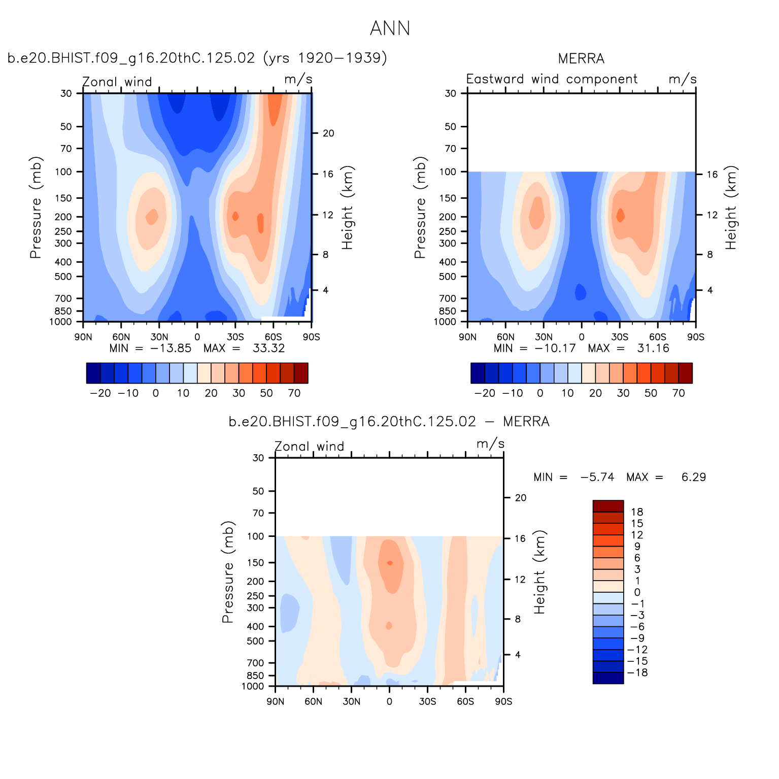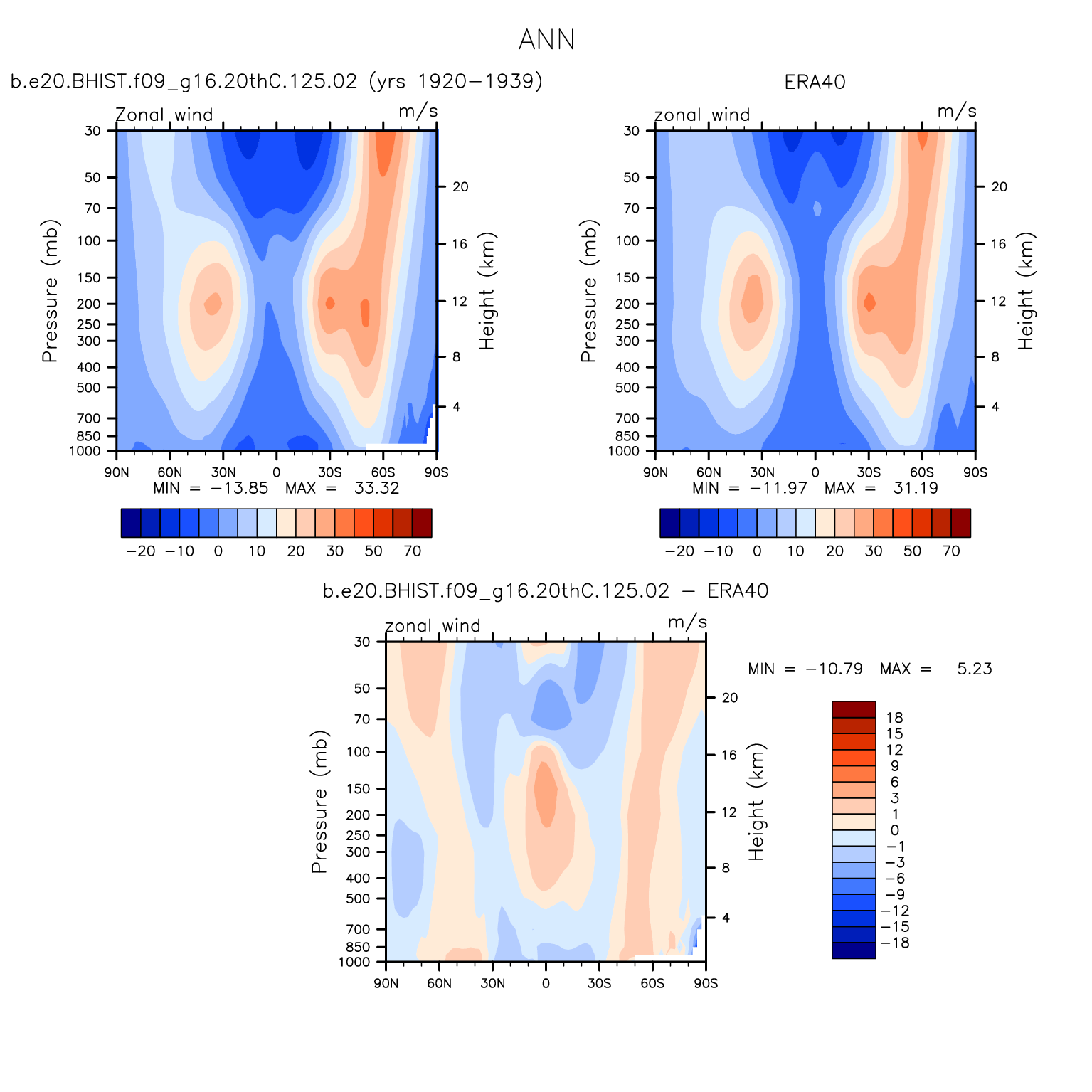 DIAG Set 4 - Vertical contour plots of DJF, JJA and ANN zonal means