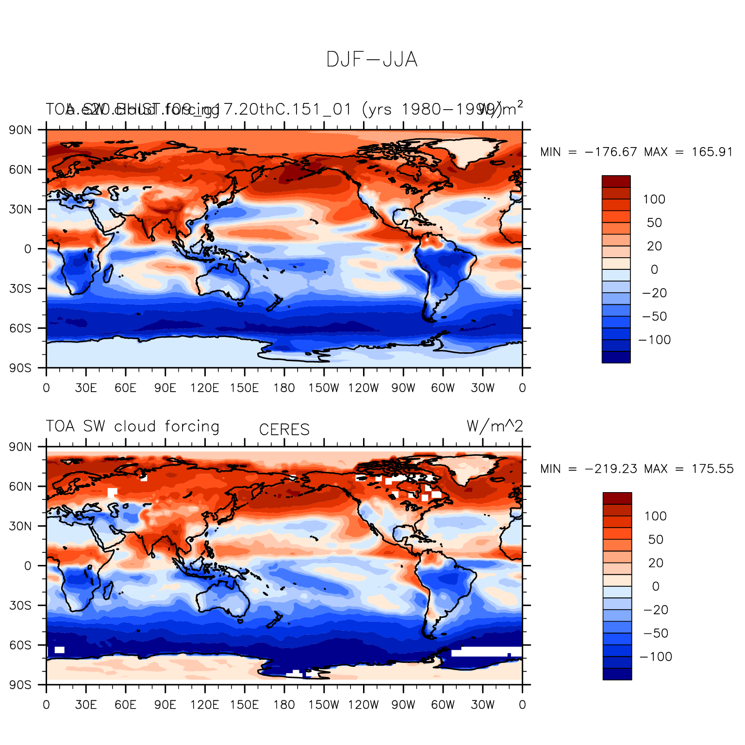 DIAG Set 9 - Horizontal contour plots of DJF-JJA differences