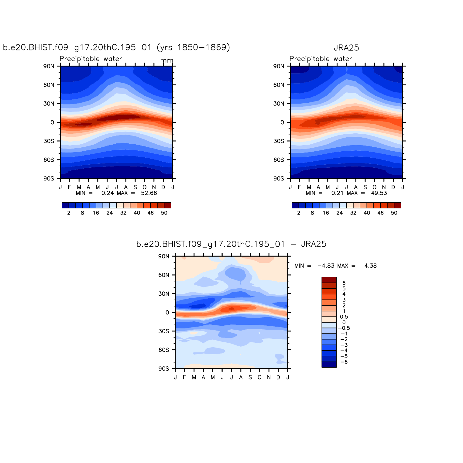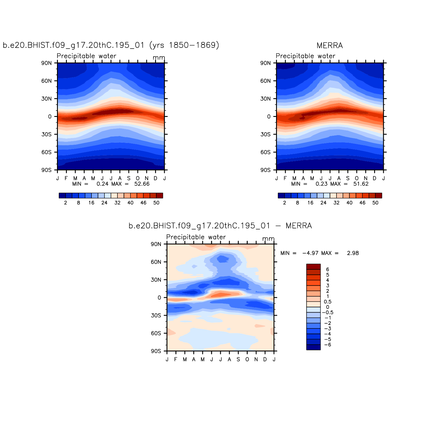 b.e20.BHIST.f09_g17.20thC.195_01 DIAG Set 8 - Annual cycle contour plots of zonal means