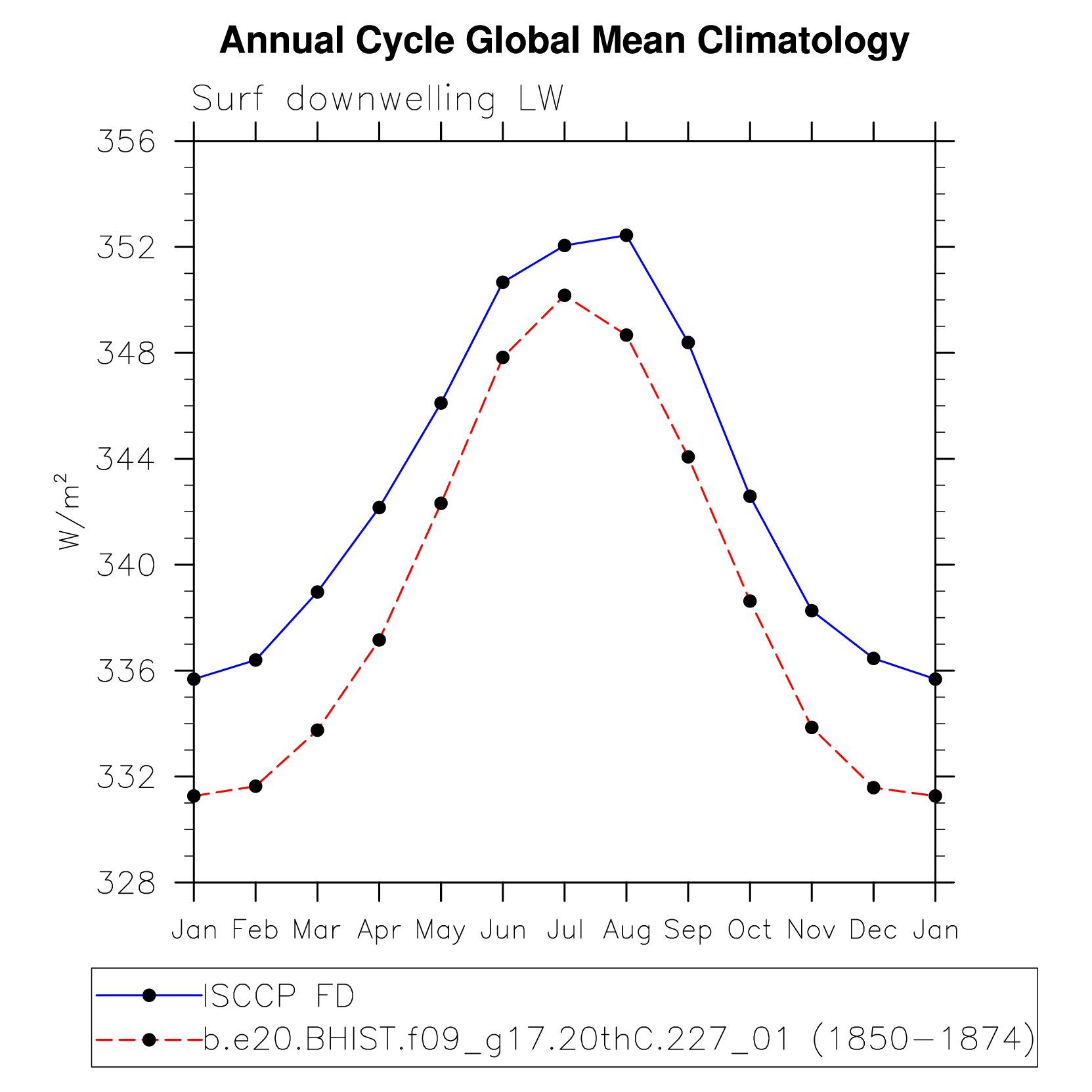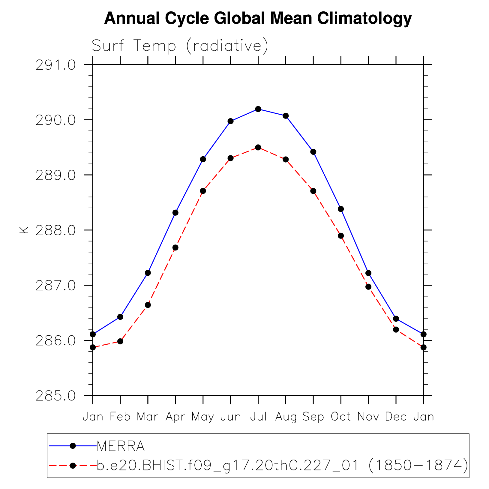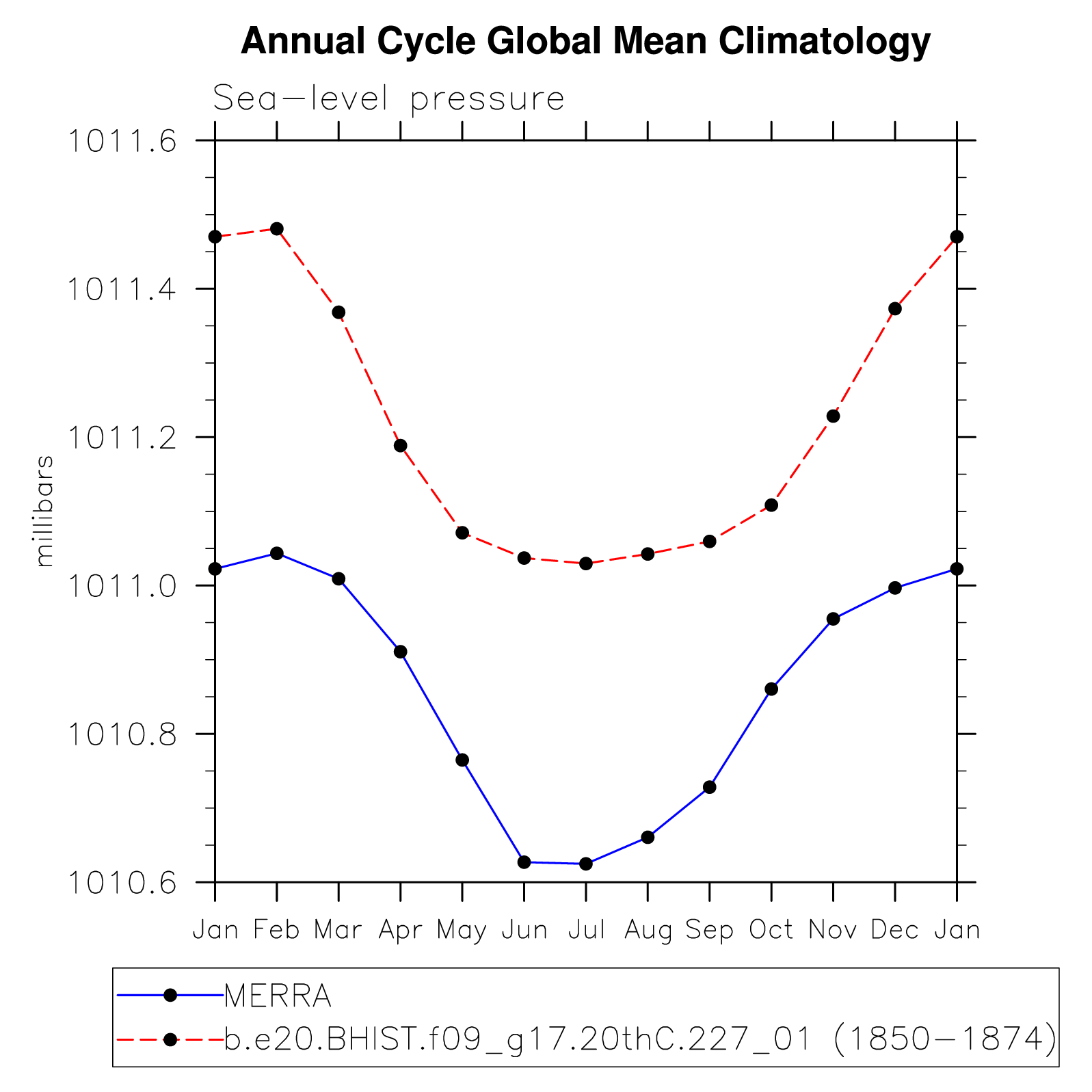 DIAG Set 10 - Annual cycle line plots of global means