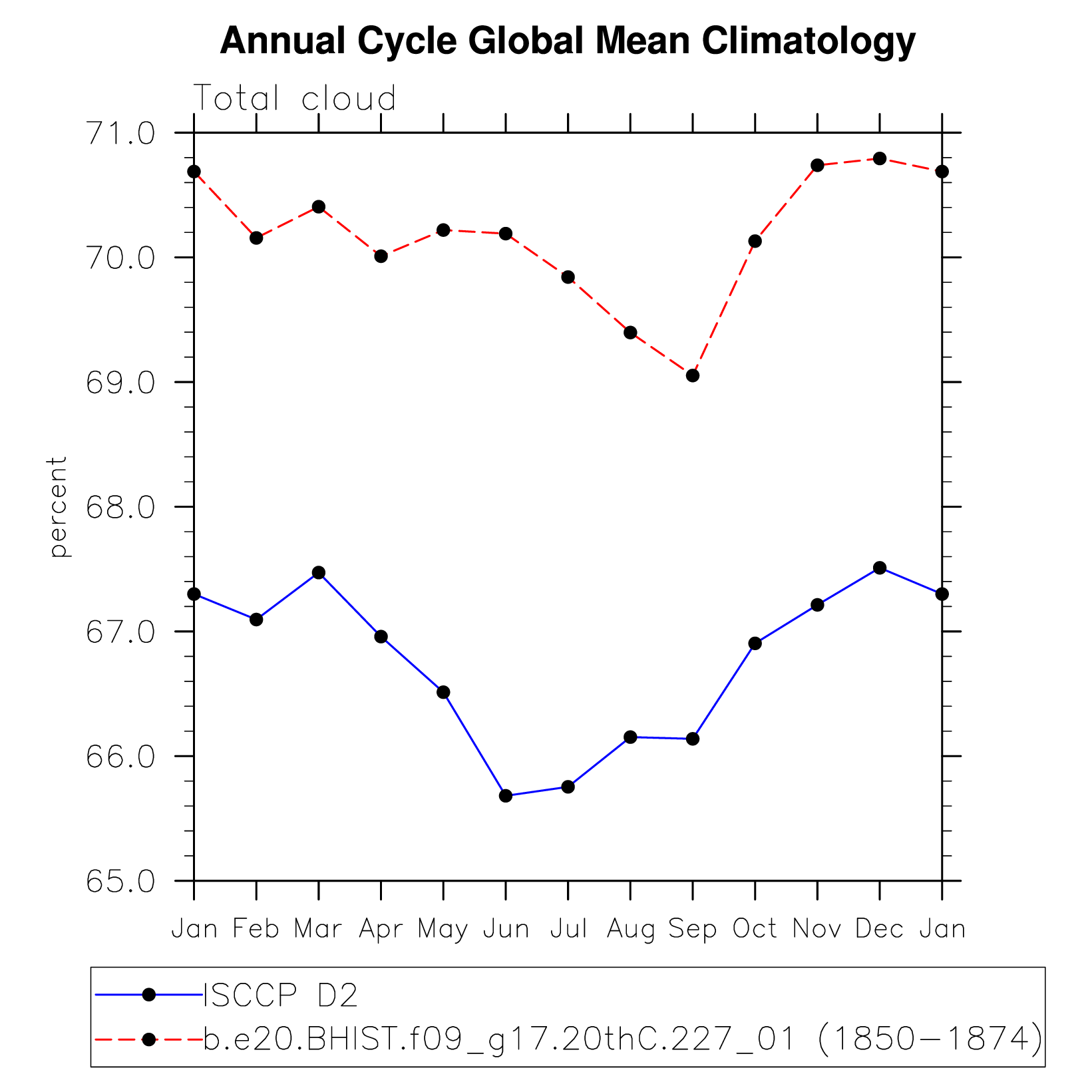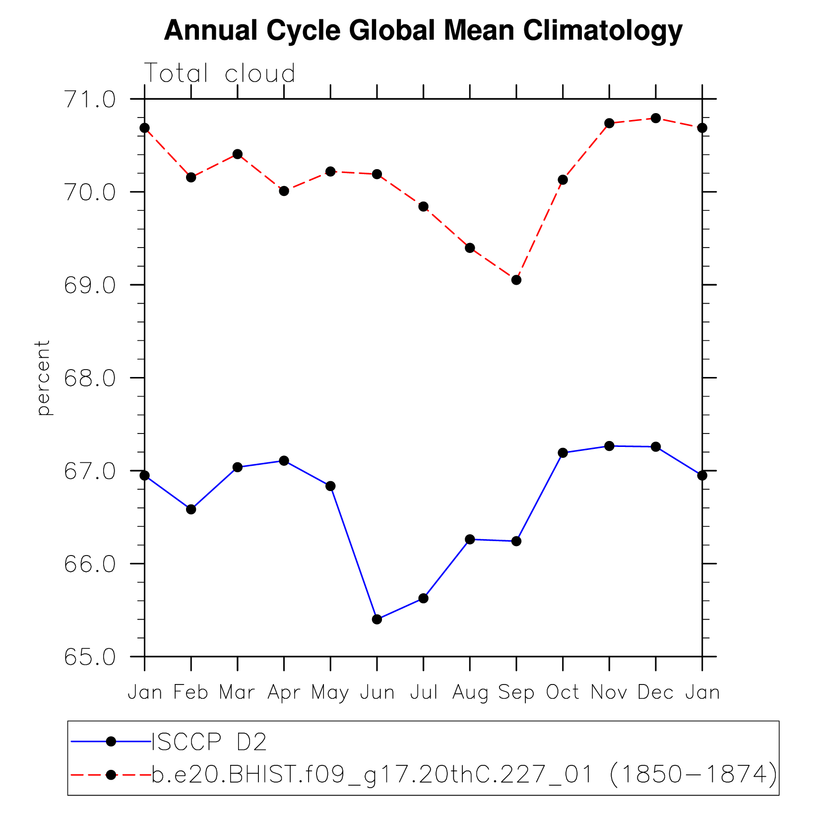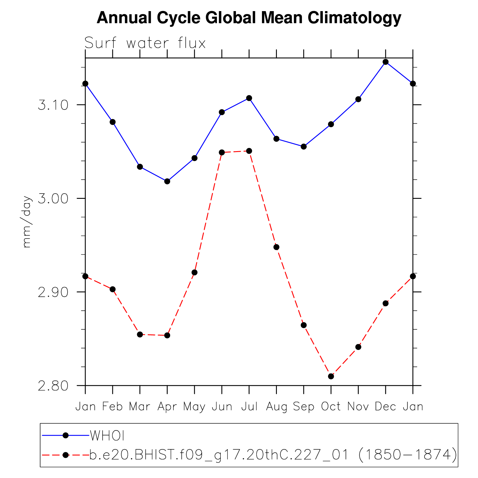 DIAG Set 10 - Annual cycle line plots of global means