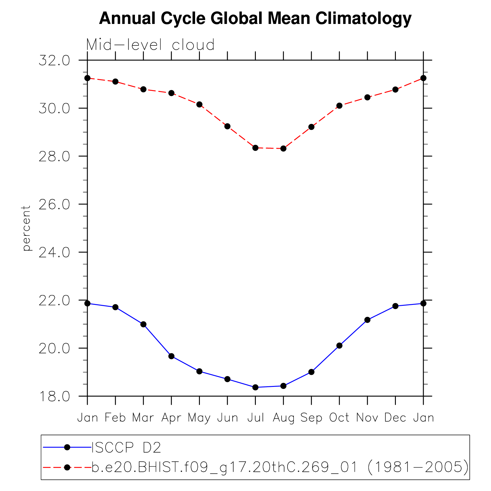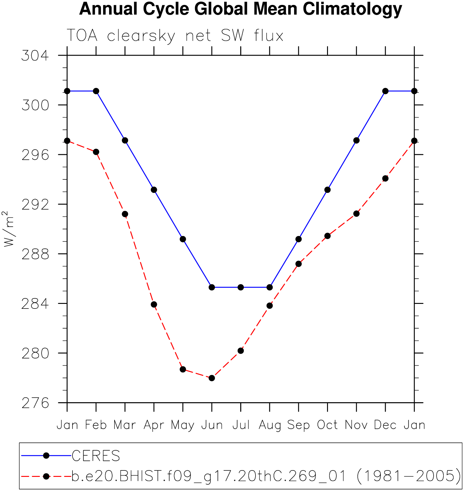 DIAG Set 10 - Annual cycle line plots of global means