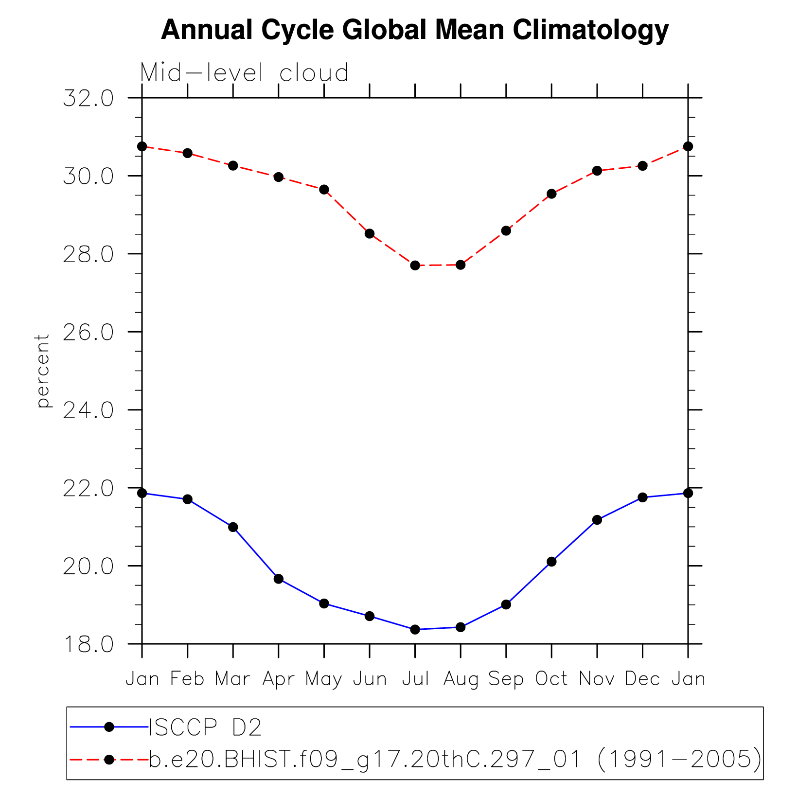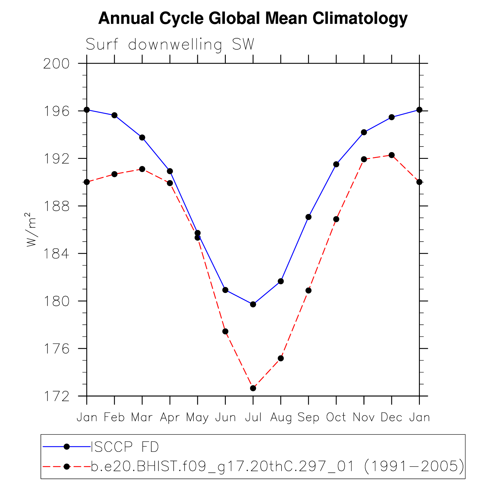 DIAG Set 10 - Annual cycle line plots of global means