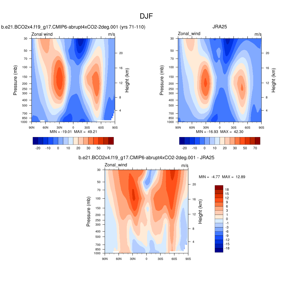 DIAG Set 4 - Vertical contour plots of DJF, JJA and ANN zonal means