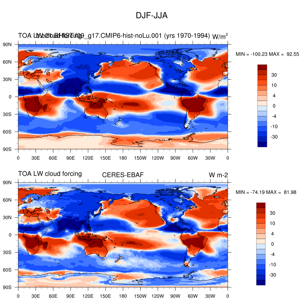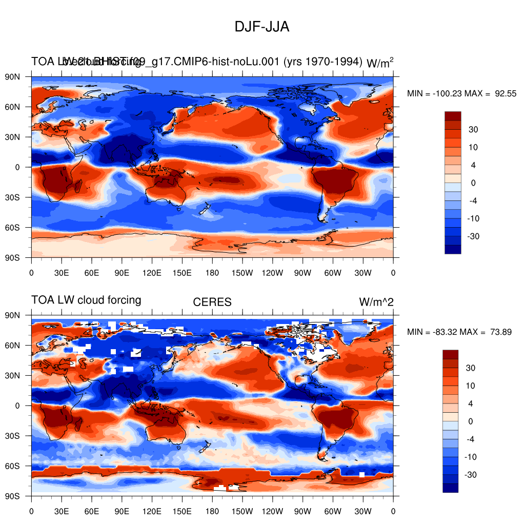 LWCF * TOA longwave cloud forcing plot