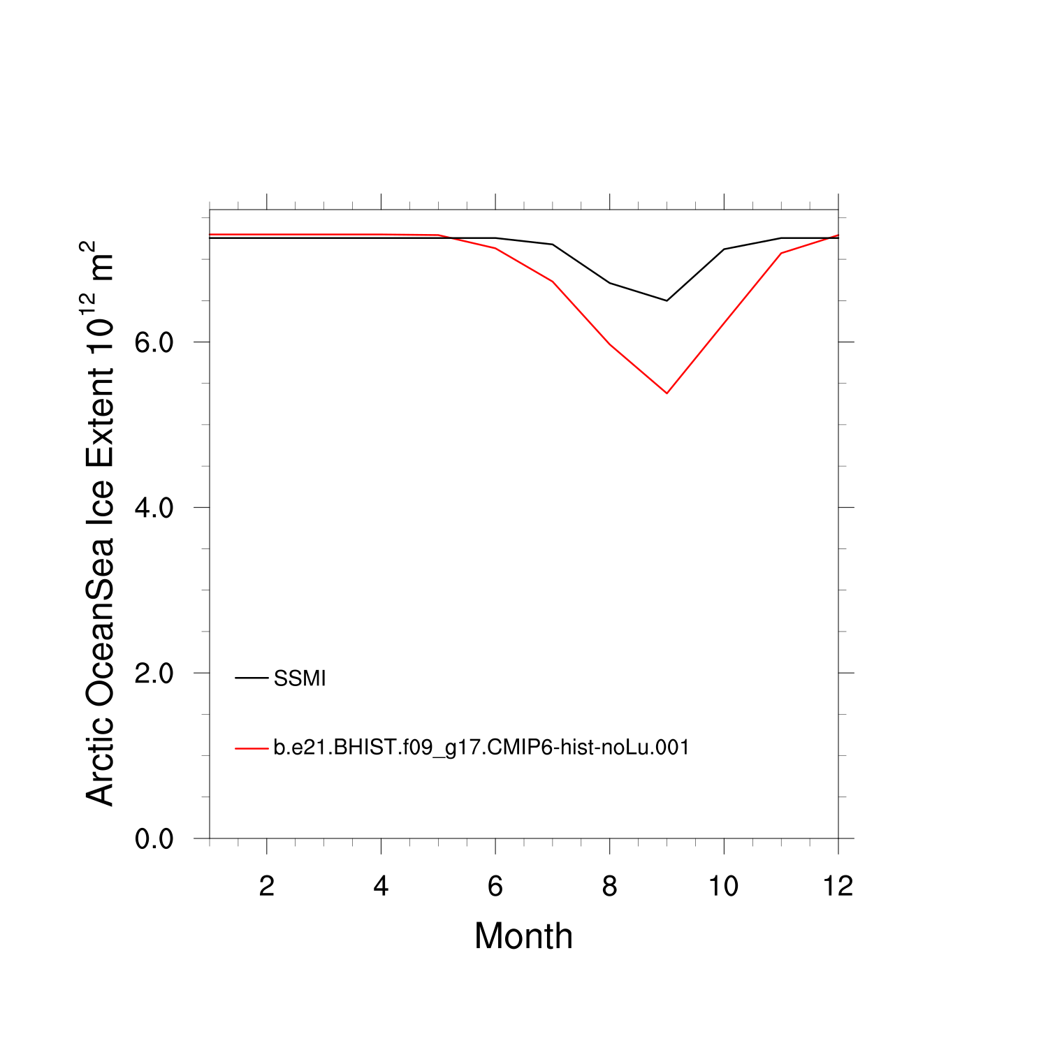Climatological Monthly Mean Extent vs Obs plot