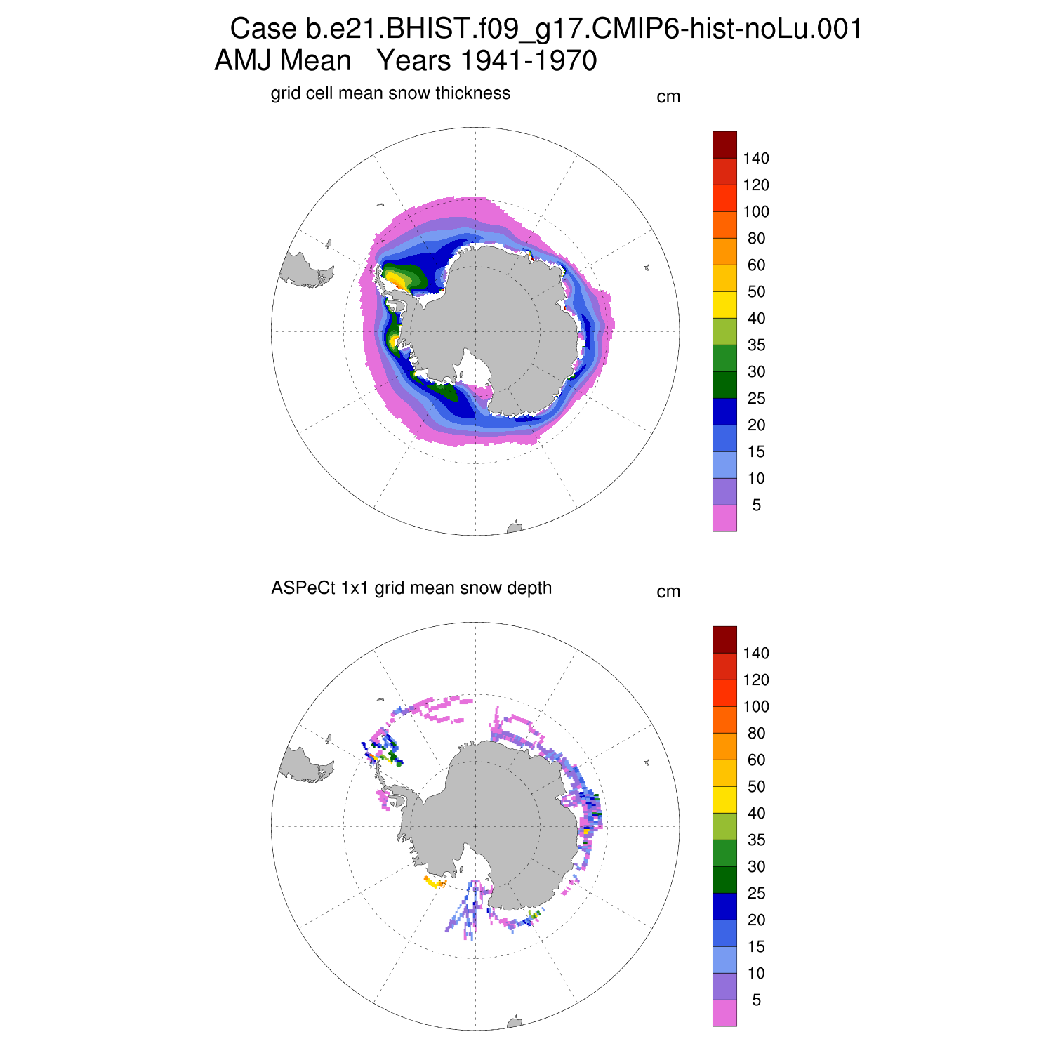Snow Depth vs ASPeCt (SH) Contour JFM AMJ JAS OND ASPeCt (SH) info