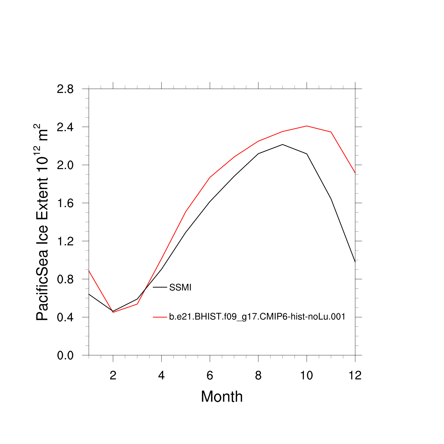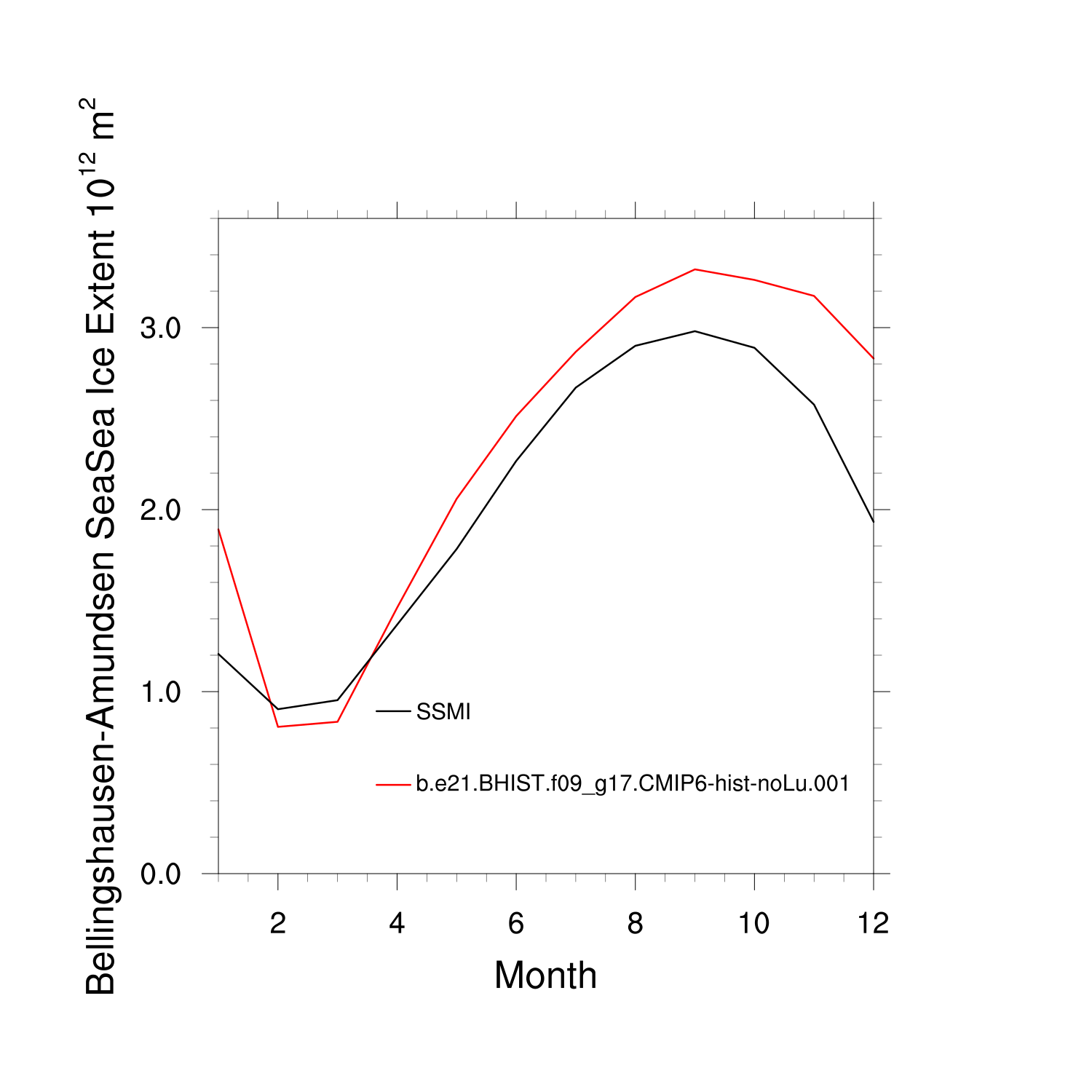 Climatological Monthly Mean Extent vs Obs plot Climatological Monthly Mean Extent vs Obs plot