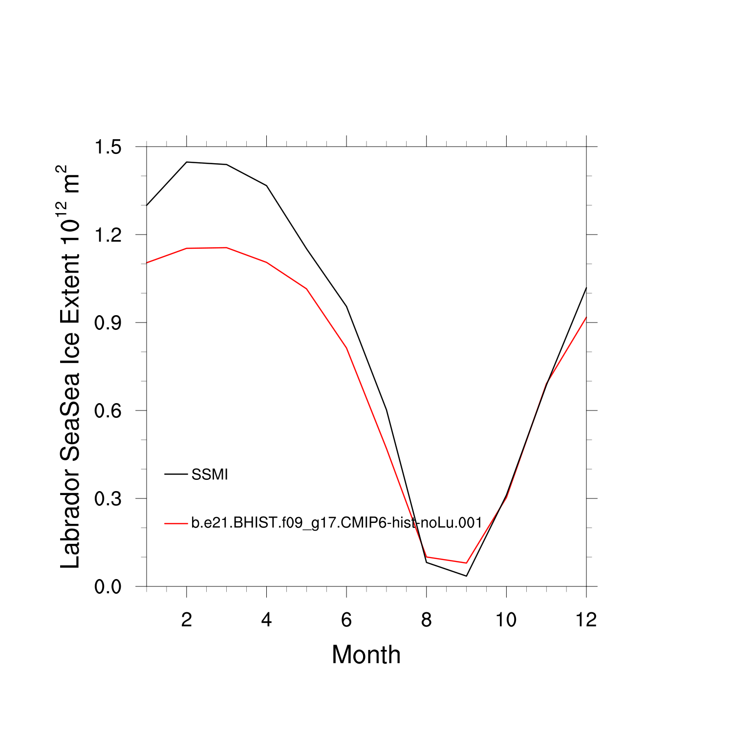 Climatological Monthly Mean Extent vs Obs plot