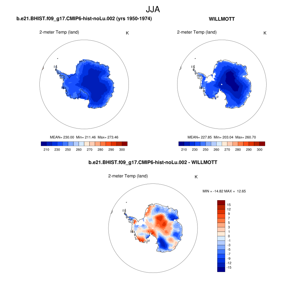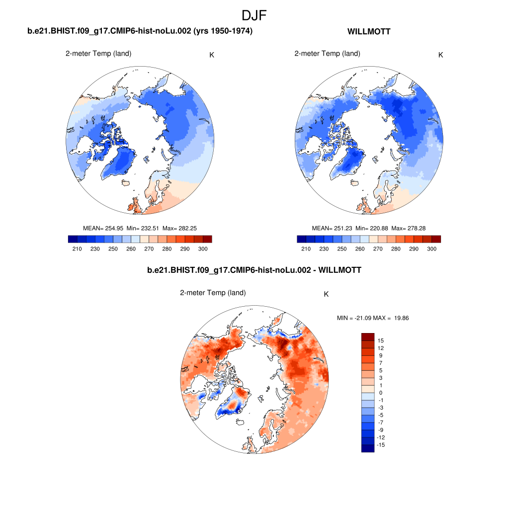 TREFHT 2-meter temperature (land) plot plot plot