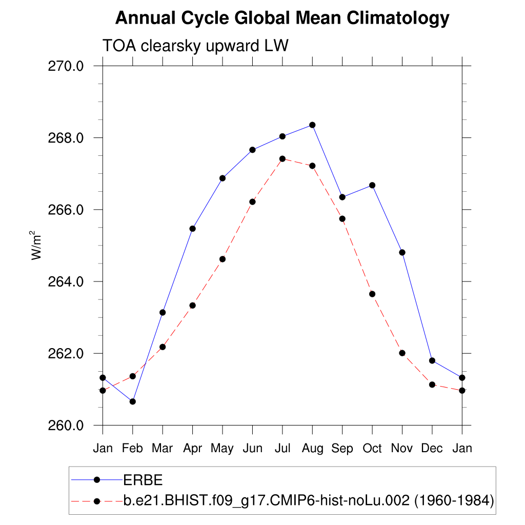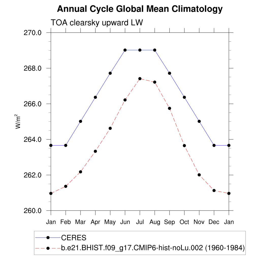 FLUTC TOA clearsky upward LW flux plot