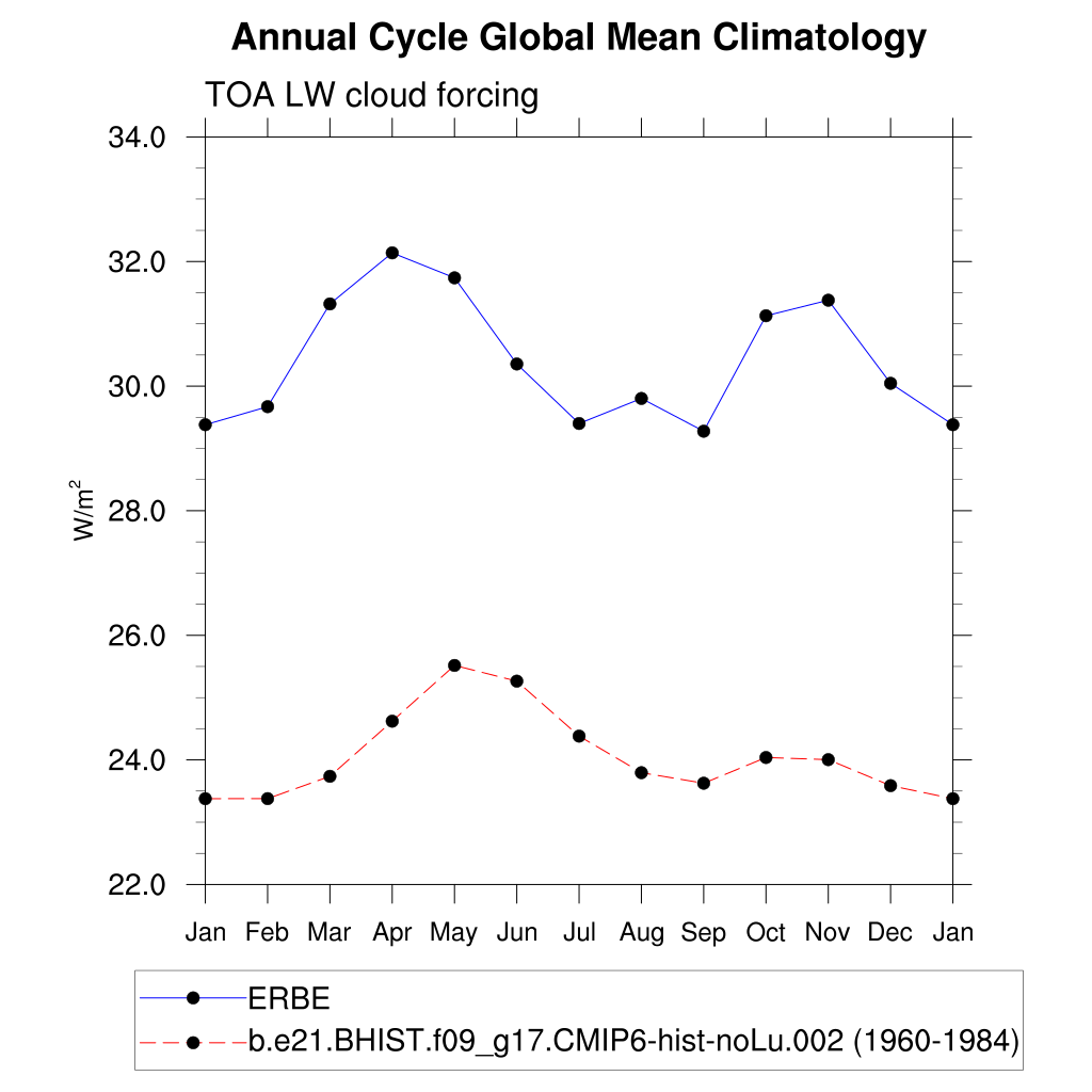 LWCF TOA longwave cloud forcing plot