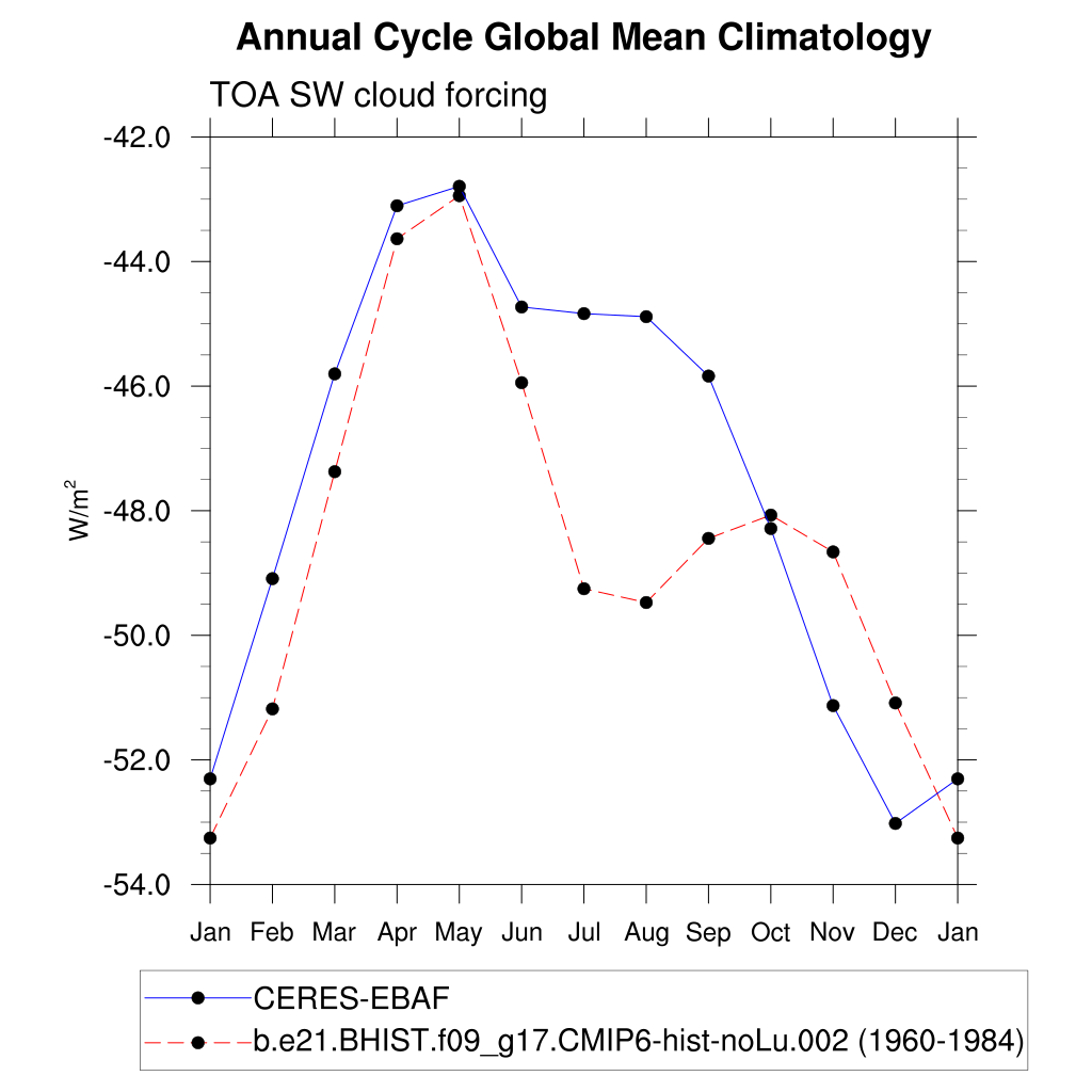 SWCF TOA shortwave cloud forcing plot