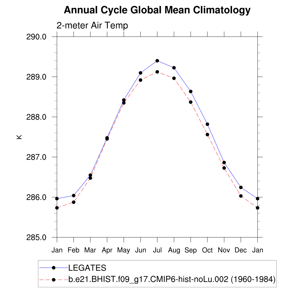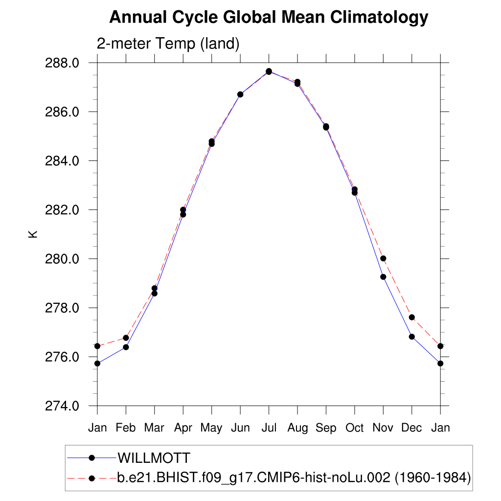 TREFHT 2-meter air temperature (land) plot