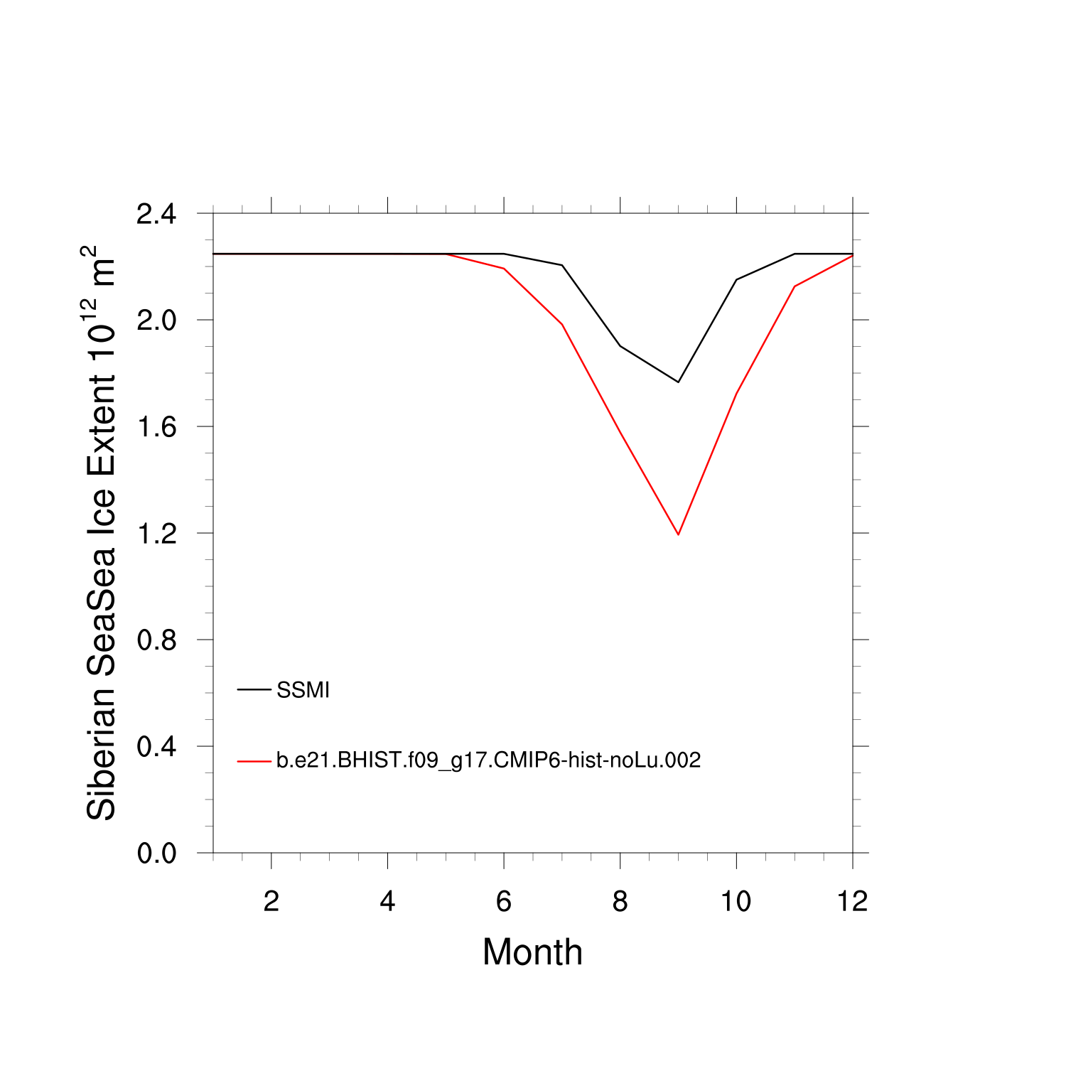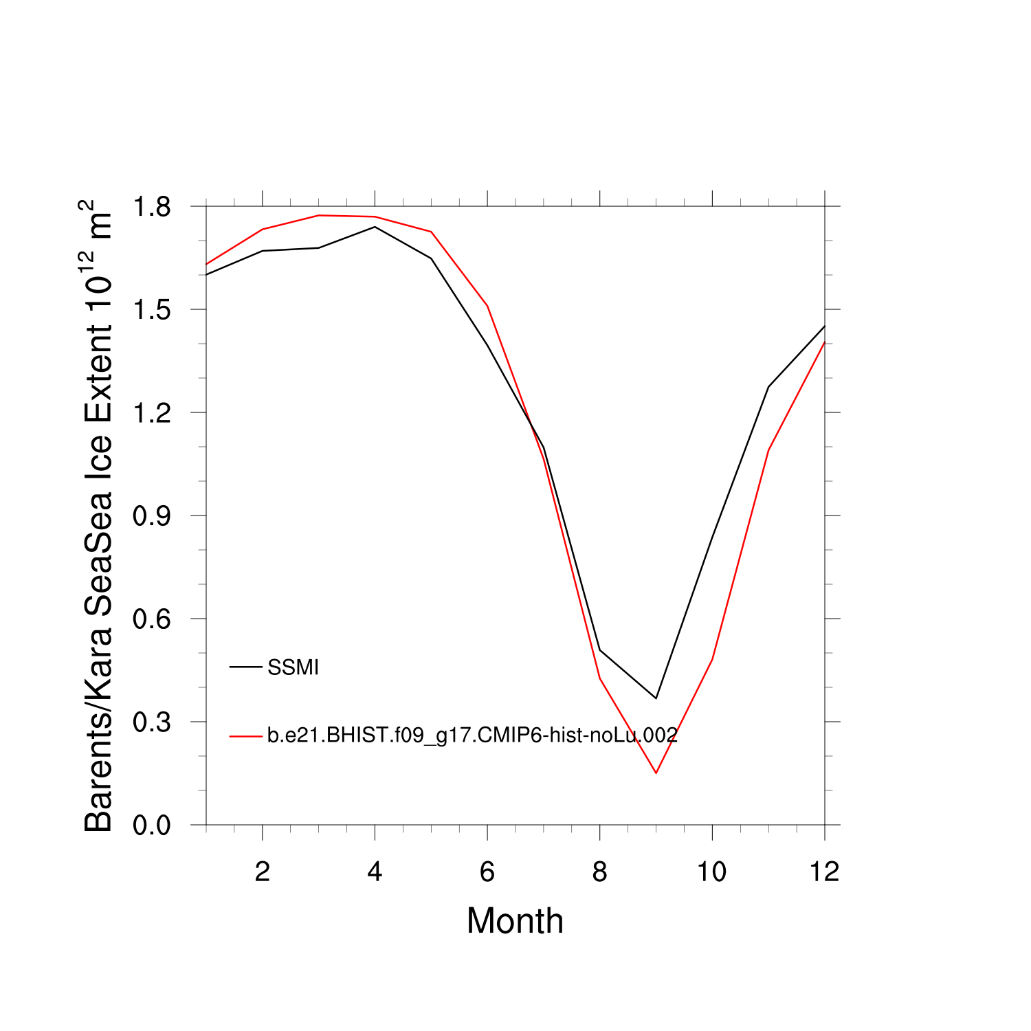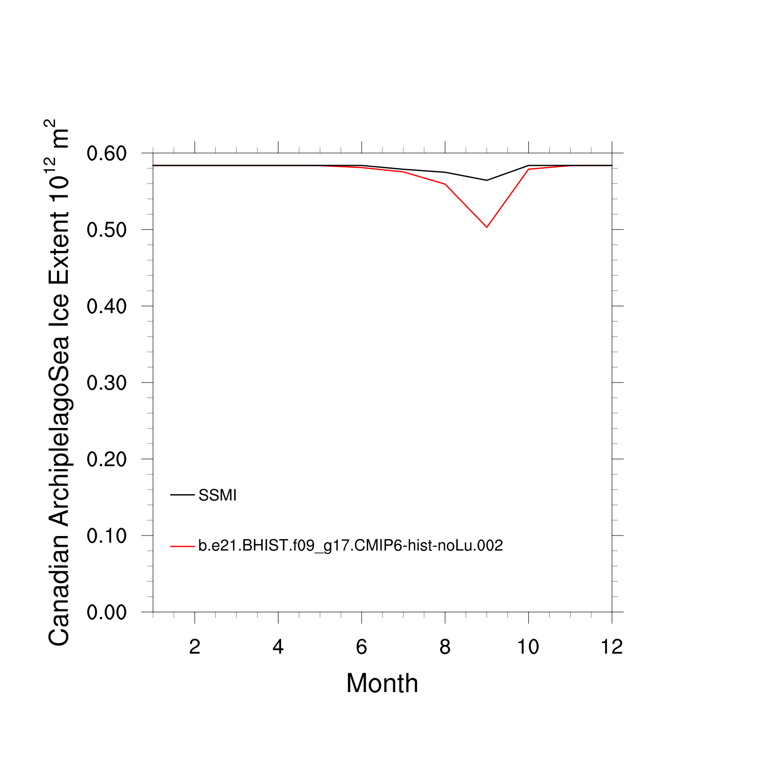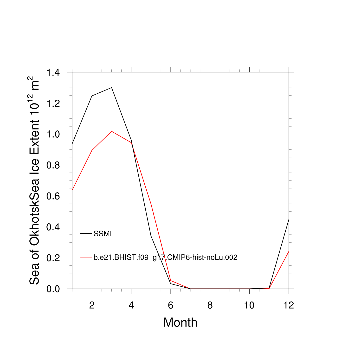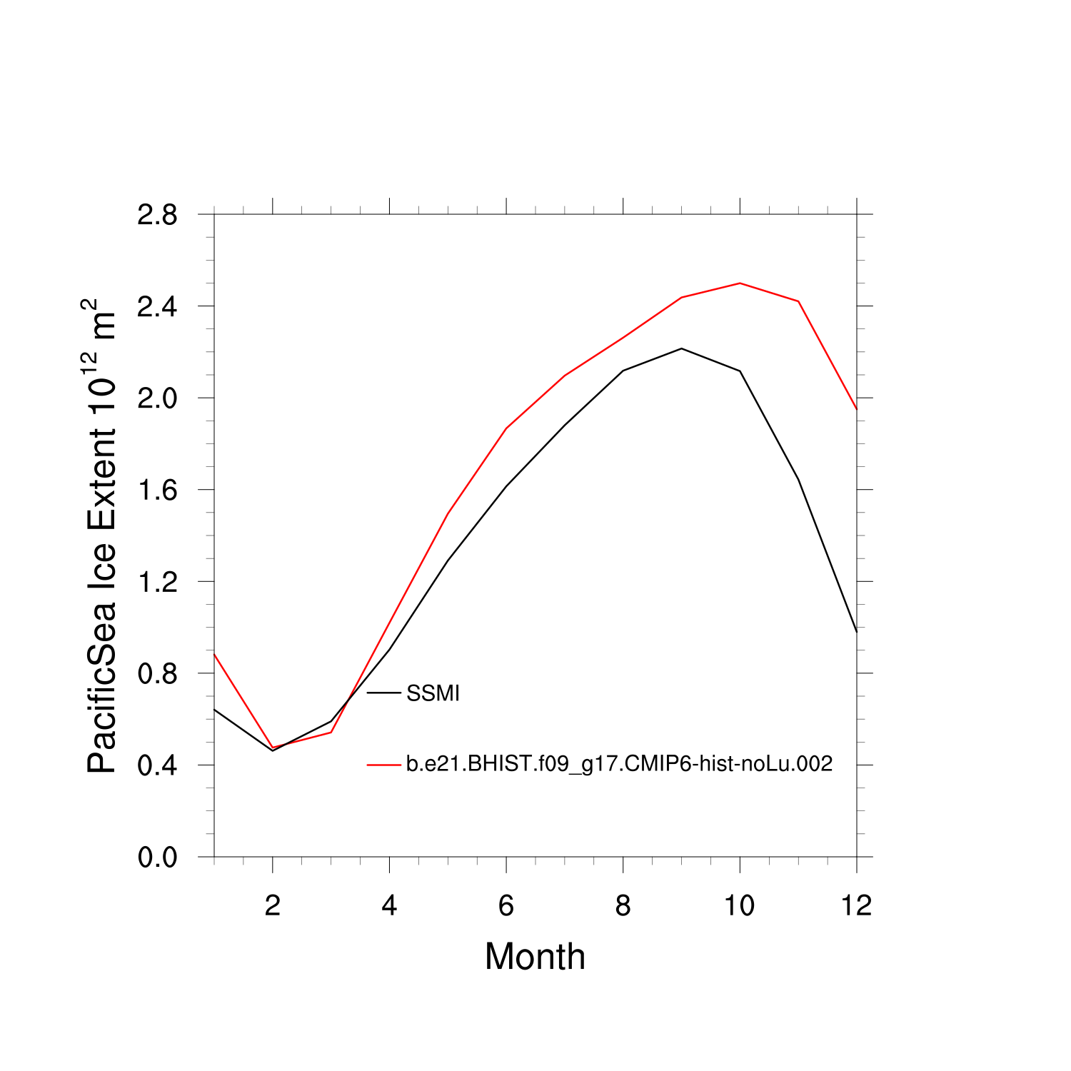 Climatological Monthly Mean Extent vs Obs plot
