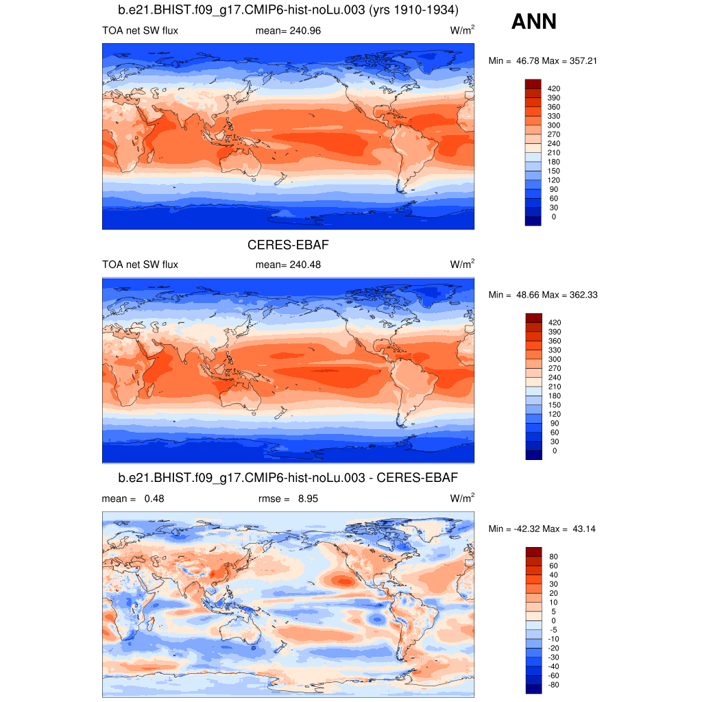 FSNTOA * TOA net SW flux plot plot plot