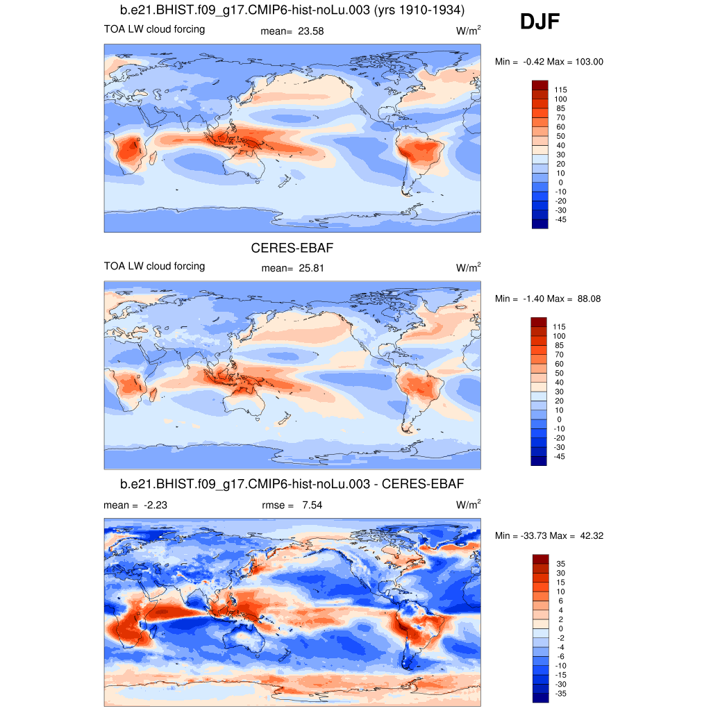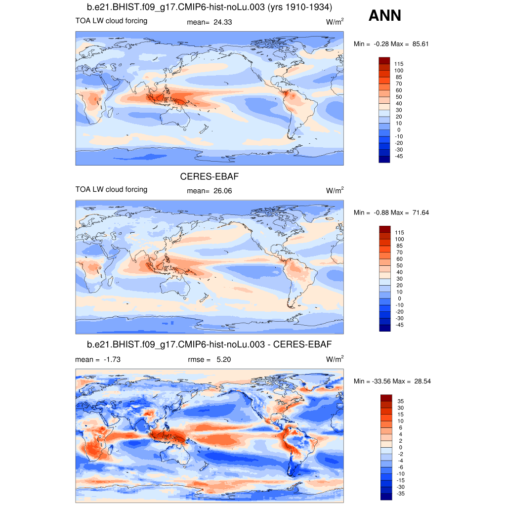 LWCF * TOA longwave cloud forcing plot plot plot