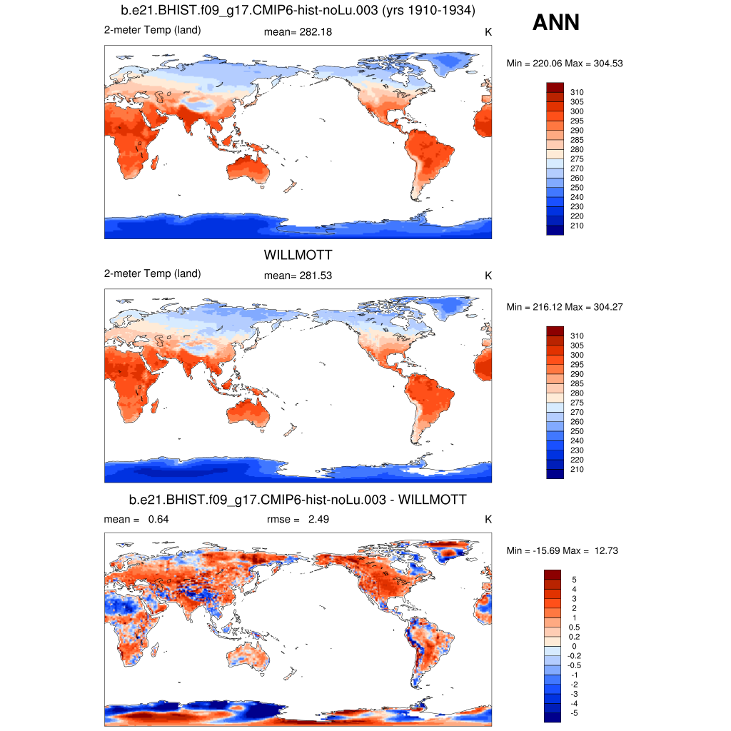 TREFHT 2-meter air temperature (land) plot plot plot