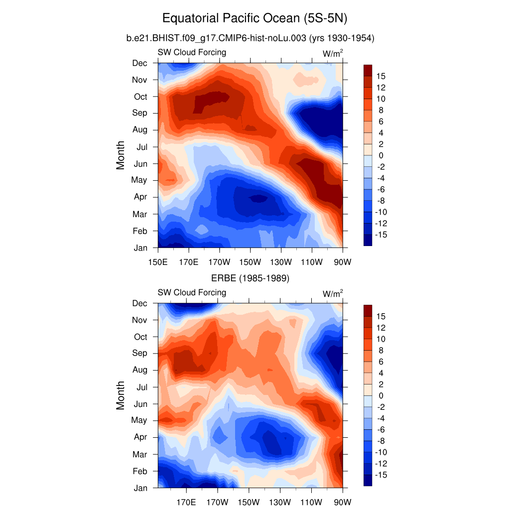 SW/LW Cloud Forcing ERBE 1985-1989 plot