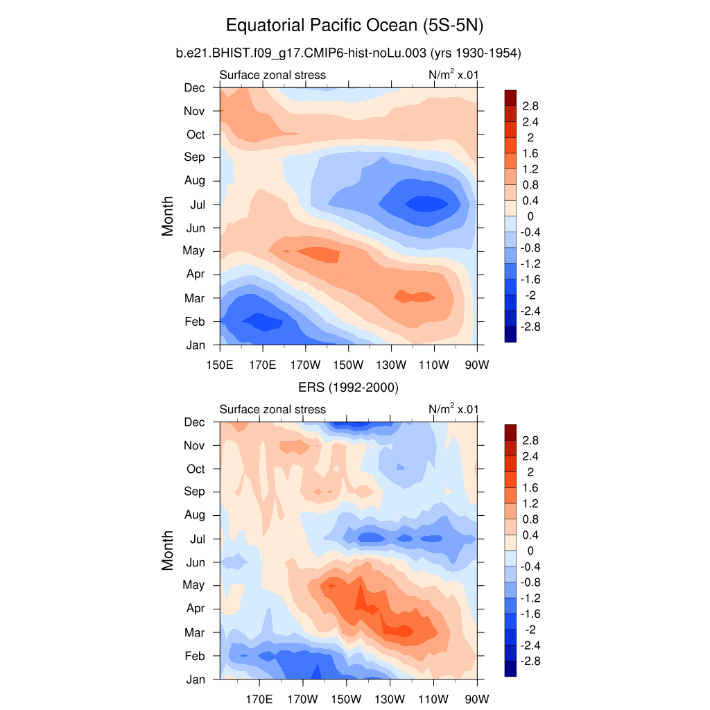 Surface Zonal Stress ERS 1992-2000 plot