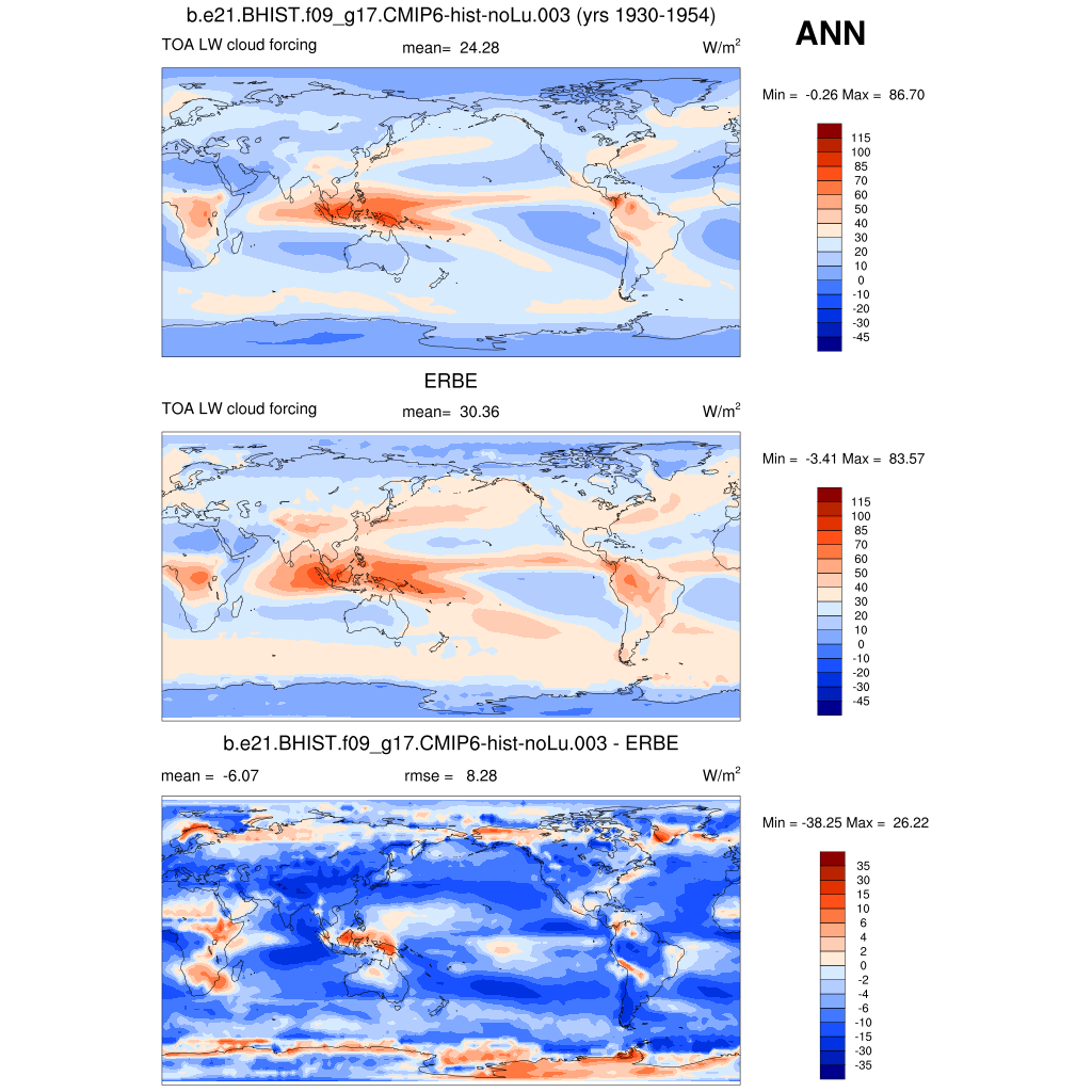 LWCF * TOA longwave cloud forcing plot plot plot