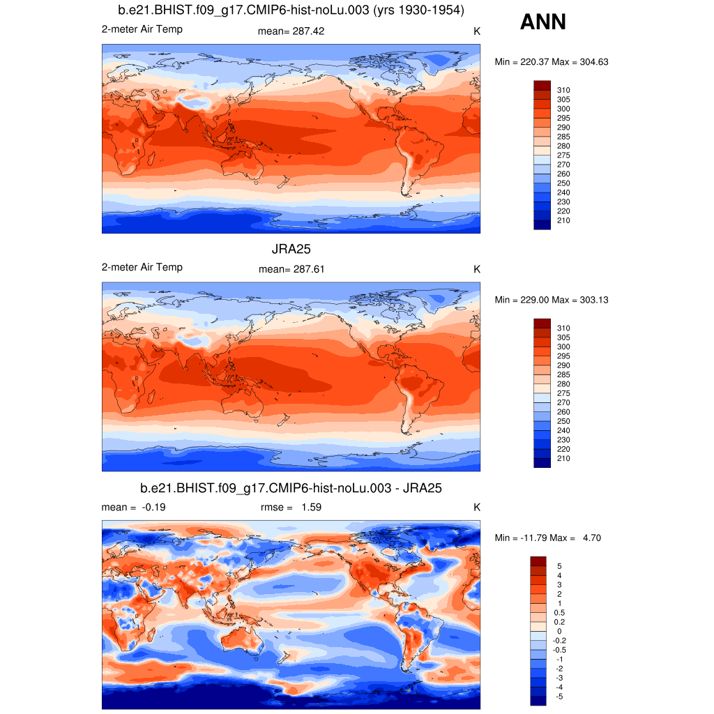 TREFHT 2-meter air temperature (land) plot plot plot