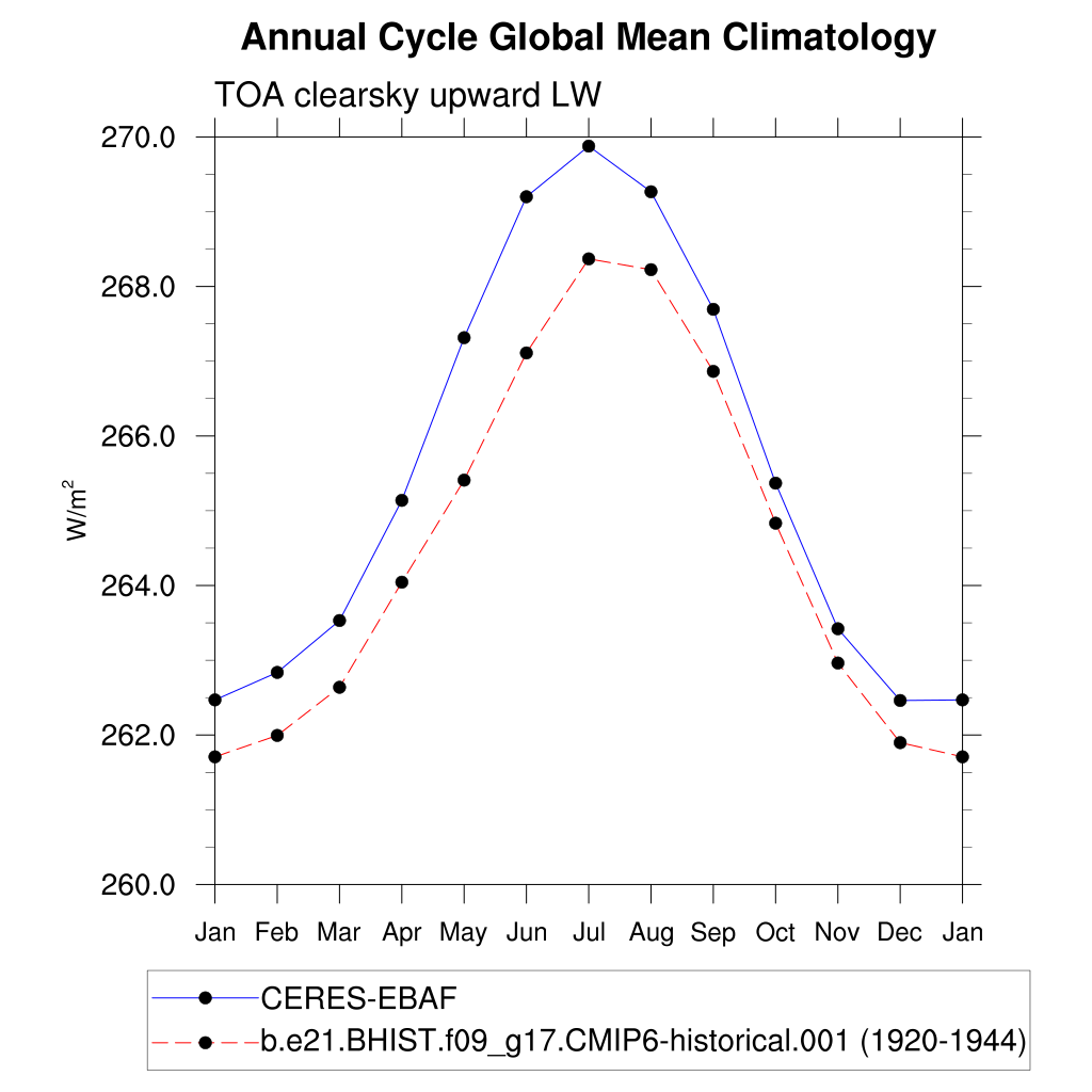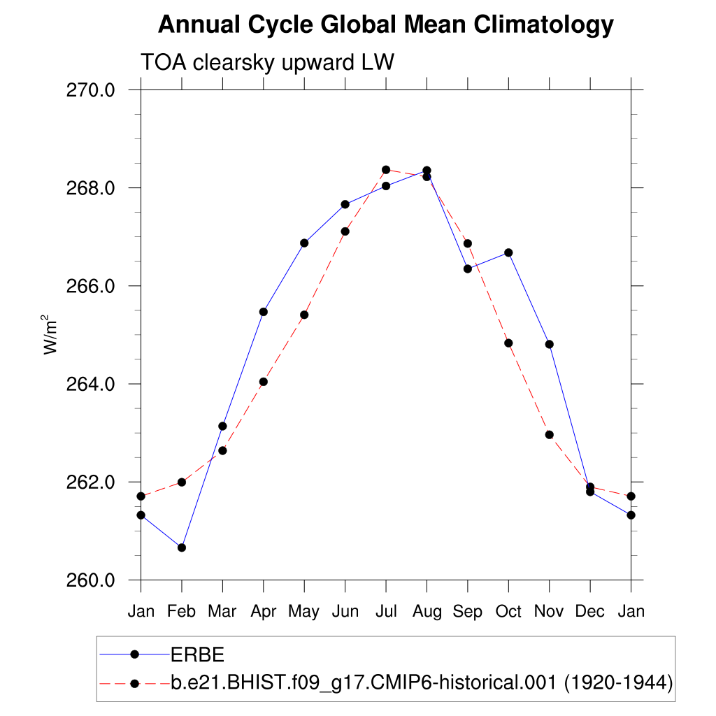 FLUTC TOA clearsky upward LW flux plot