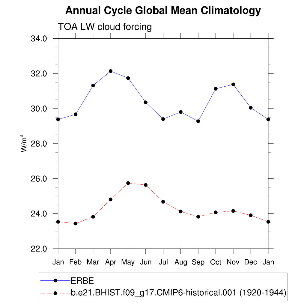 LWCF TOA longwave cloud forcing plot