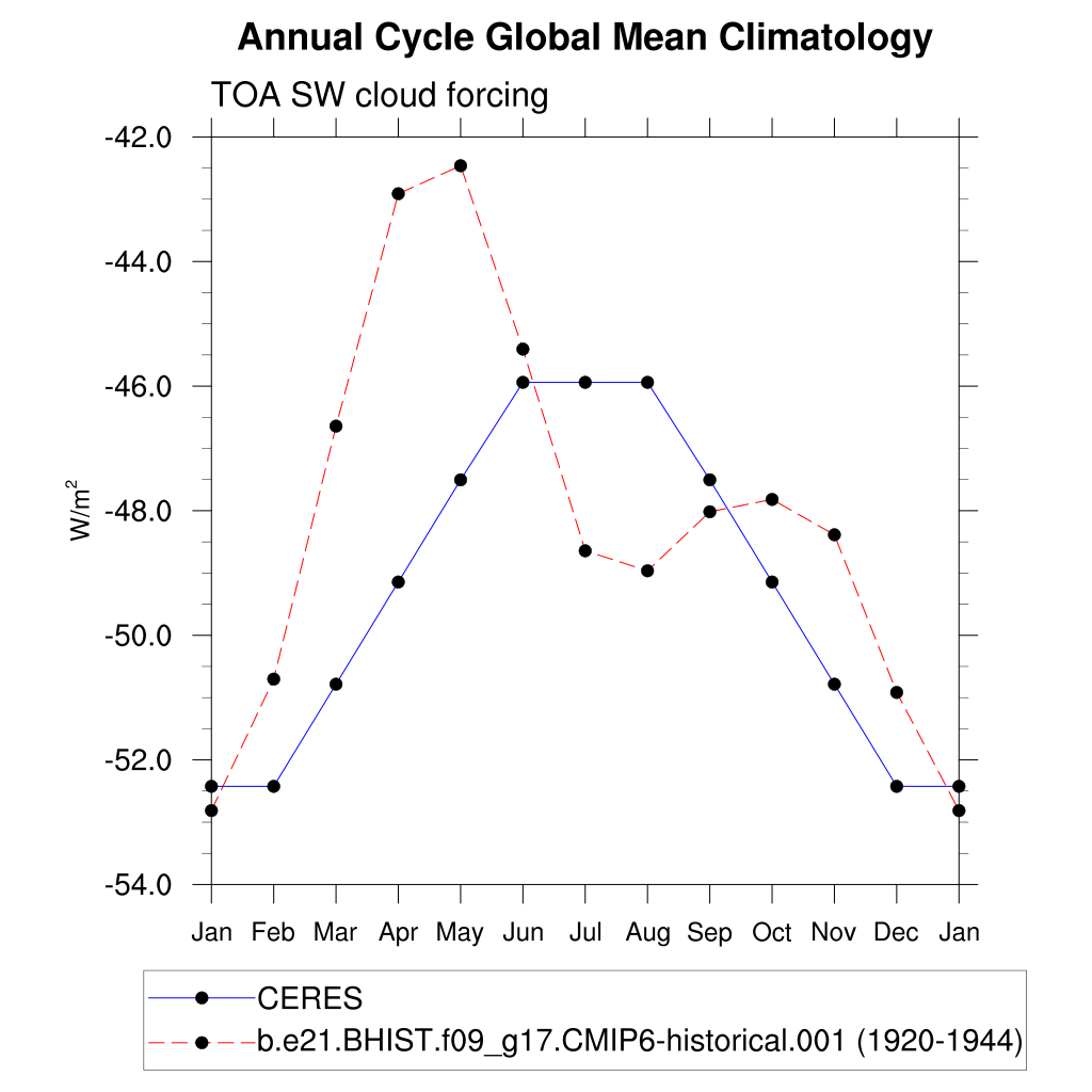 SWCF TOA shortwave cloud forcing plot