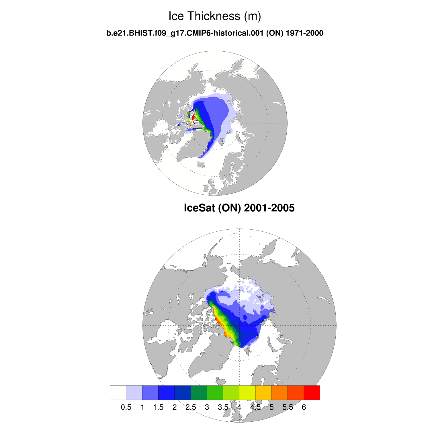 Ice Thickness vs IceSat (NH) Contour FM ON ICESat (NH) info
