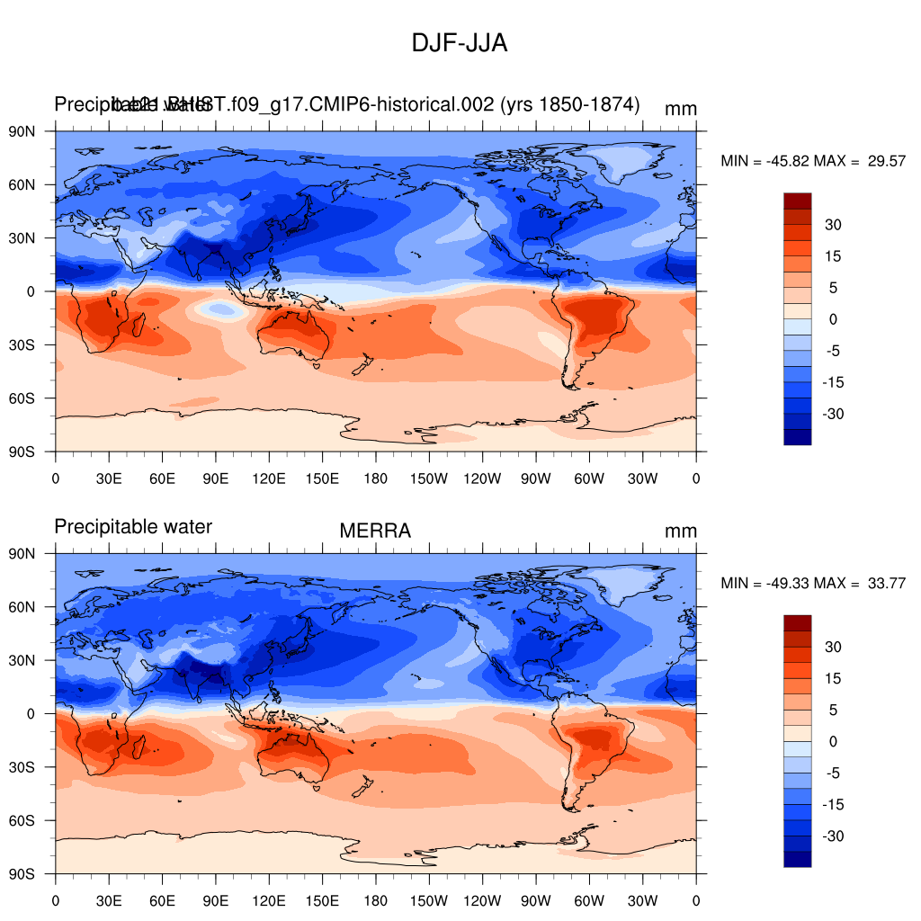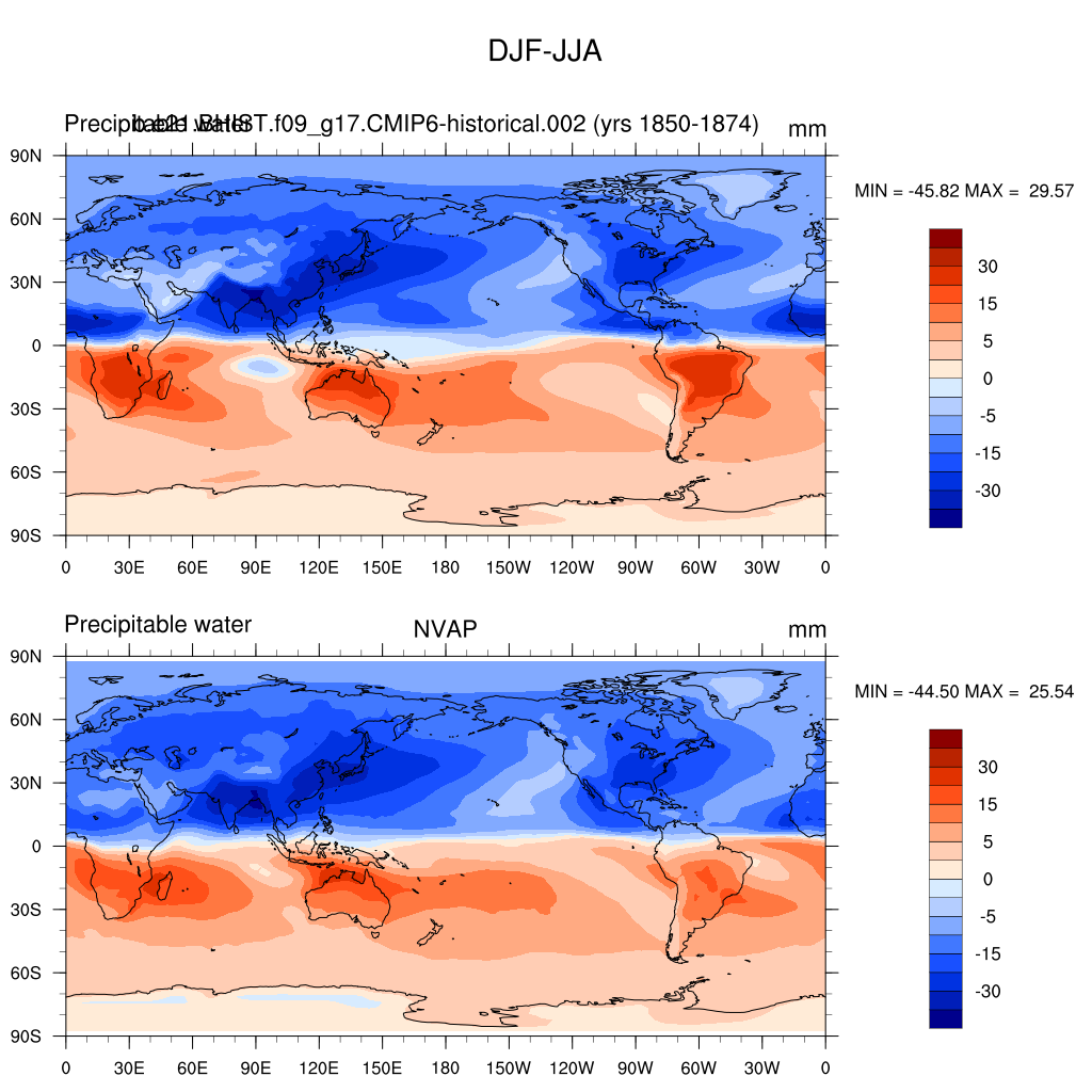 b.e21.BHIST.f09_g17.CMIP6-historical.002DIAG Set 9 - Horizontal contour plots of DJF-JJA differences