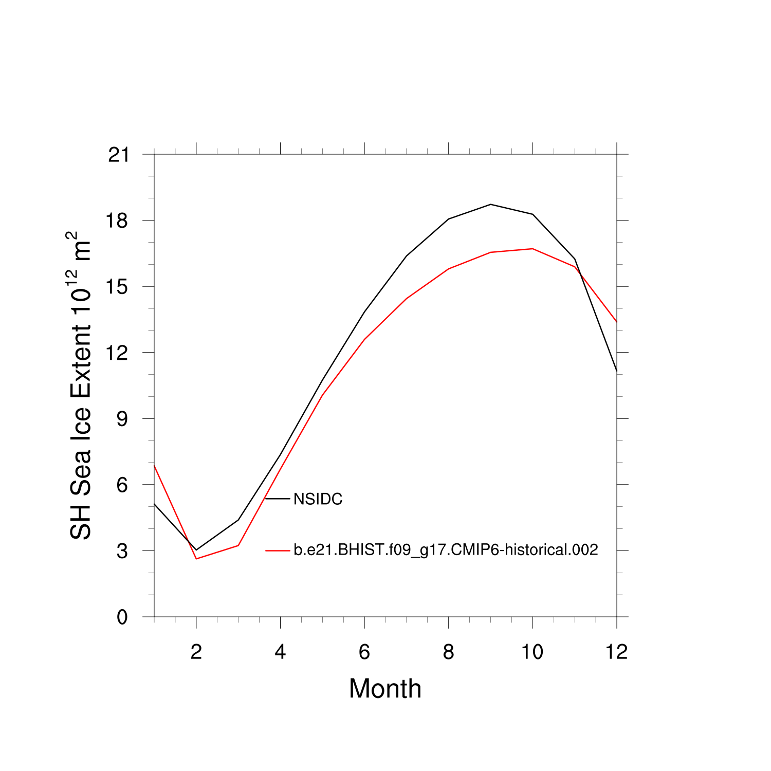 Climatological Monthly Mean Extent vs Obs plot plot