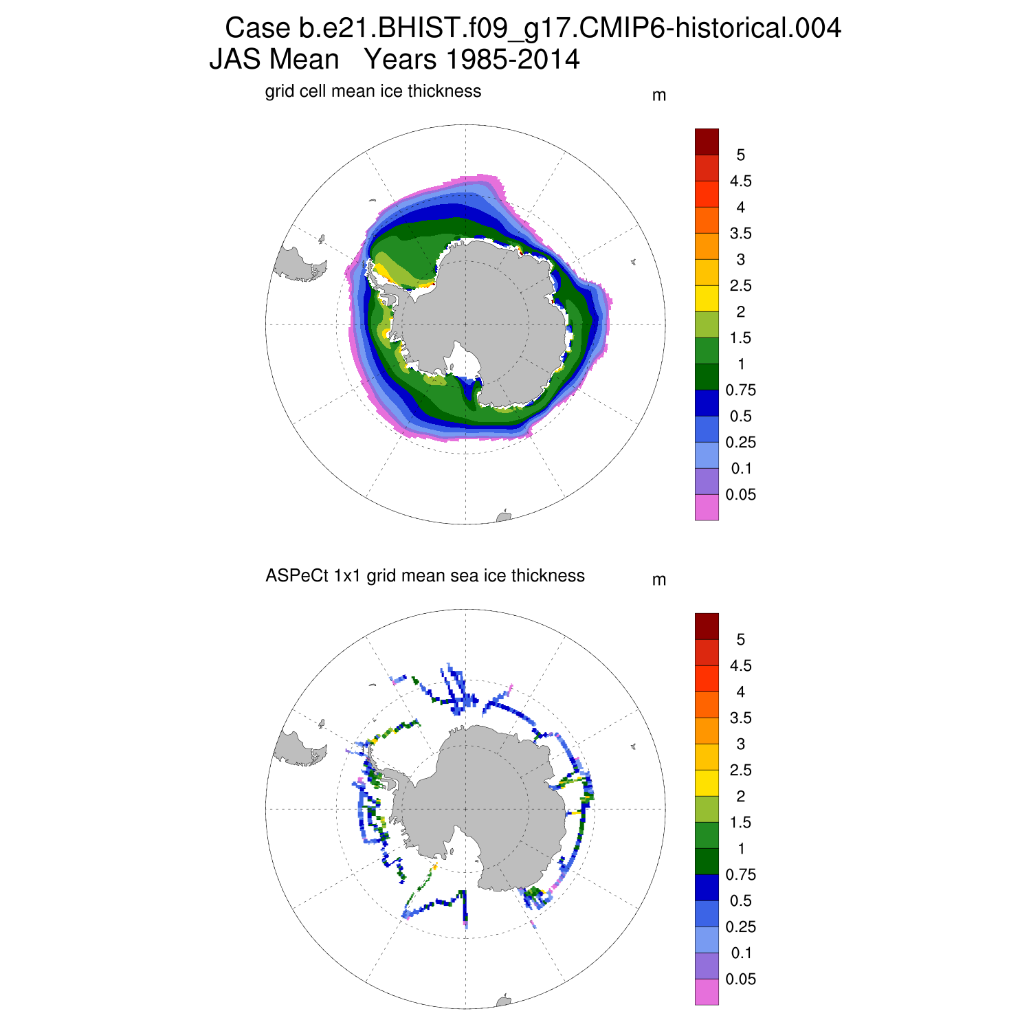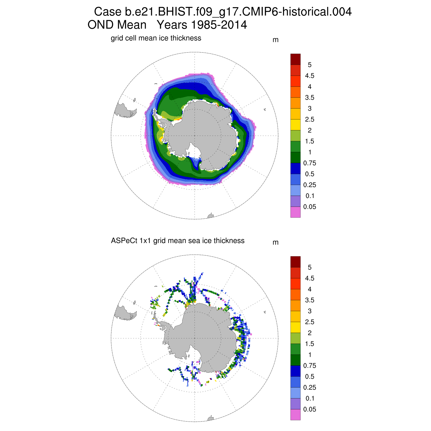 Ice Thickness vs ASPeCt (SH) Contour JFM AMJ JAS OND ASPeCt (SH) info
