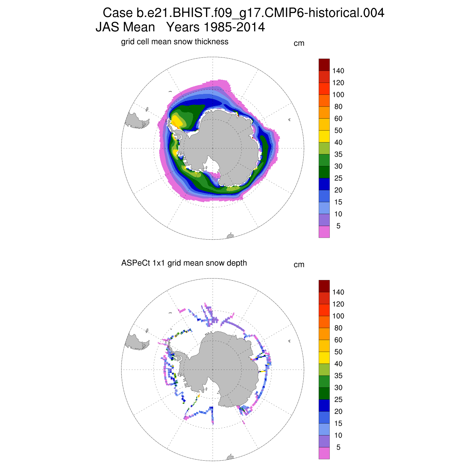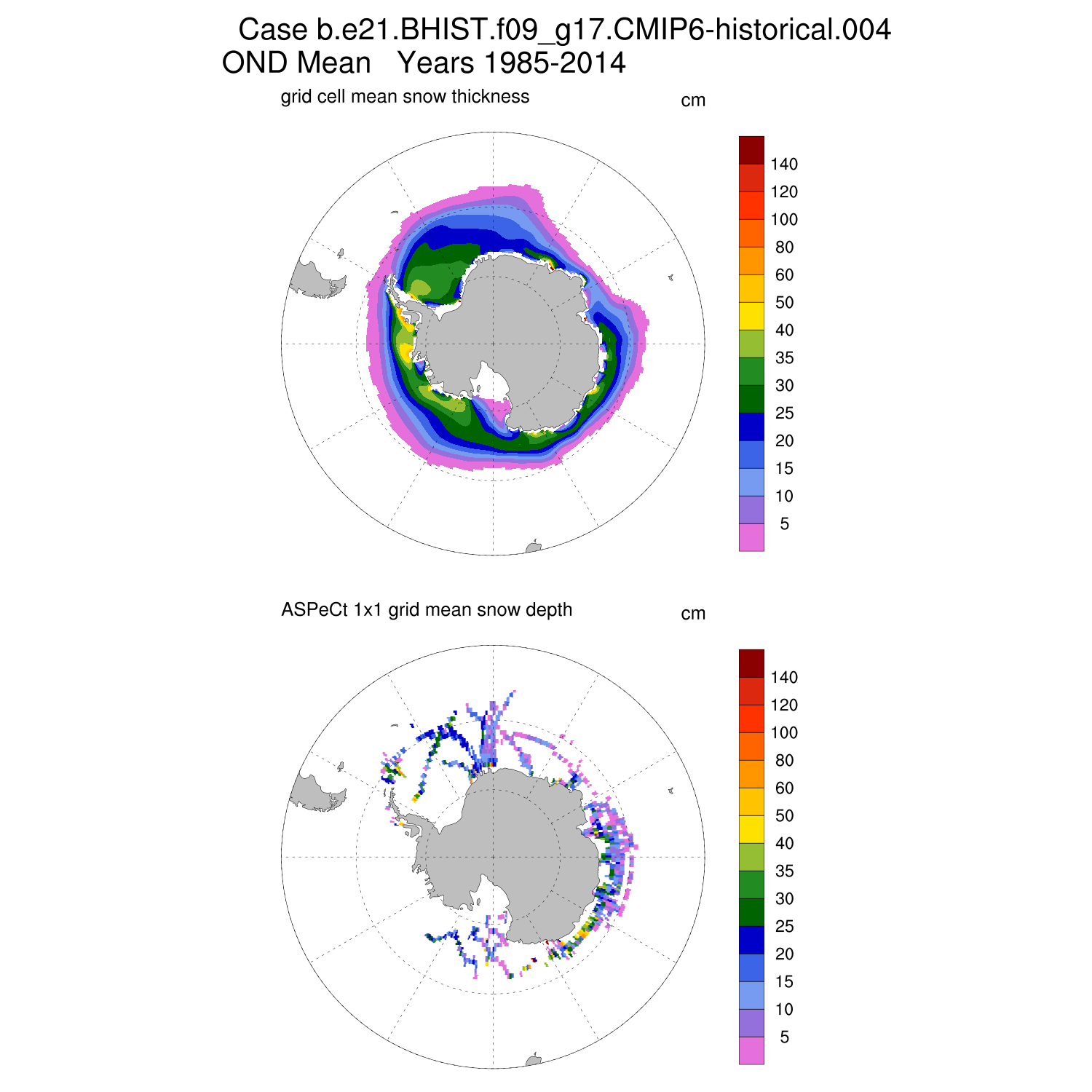 Snow Depth vs ASPeCt (SH) Contour JFM AMJ JAS OND ASPeCt (SH) info