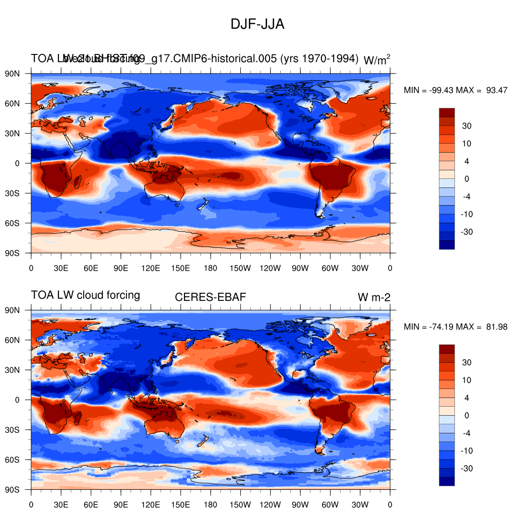 LWCF * TOA longwave cloud forcing plot