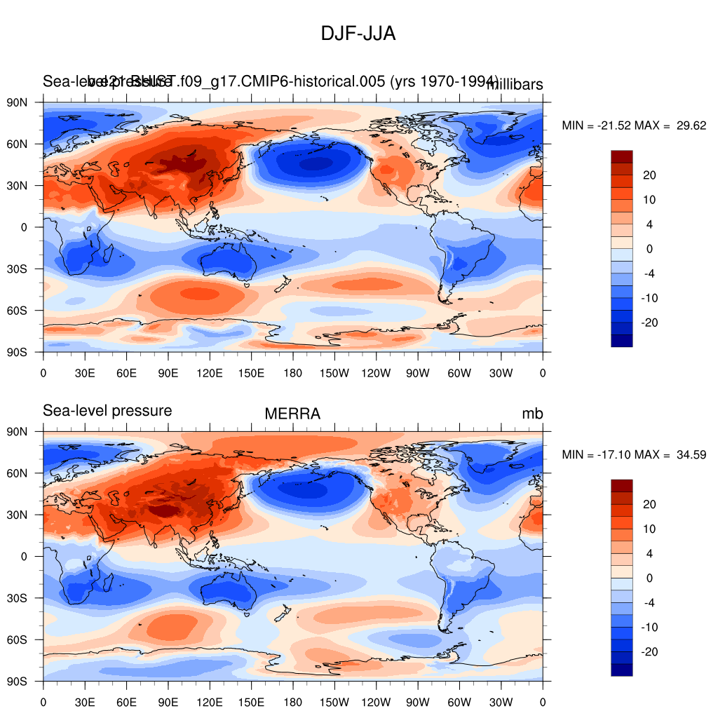 DIAG Set 9 - Horizontal contour plots of DJF-JJA differences