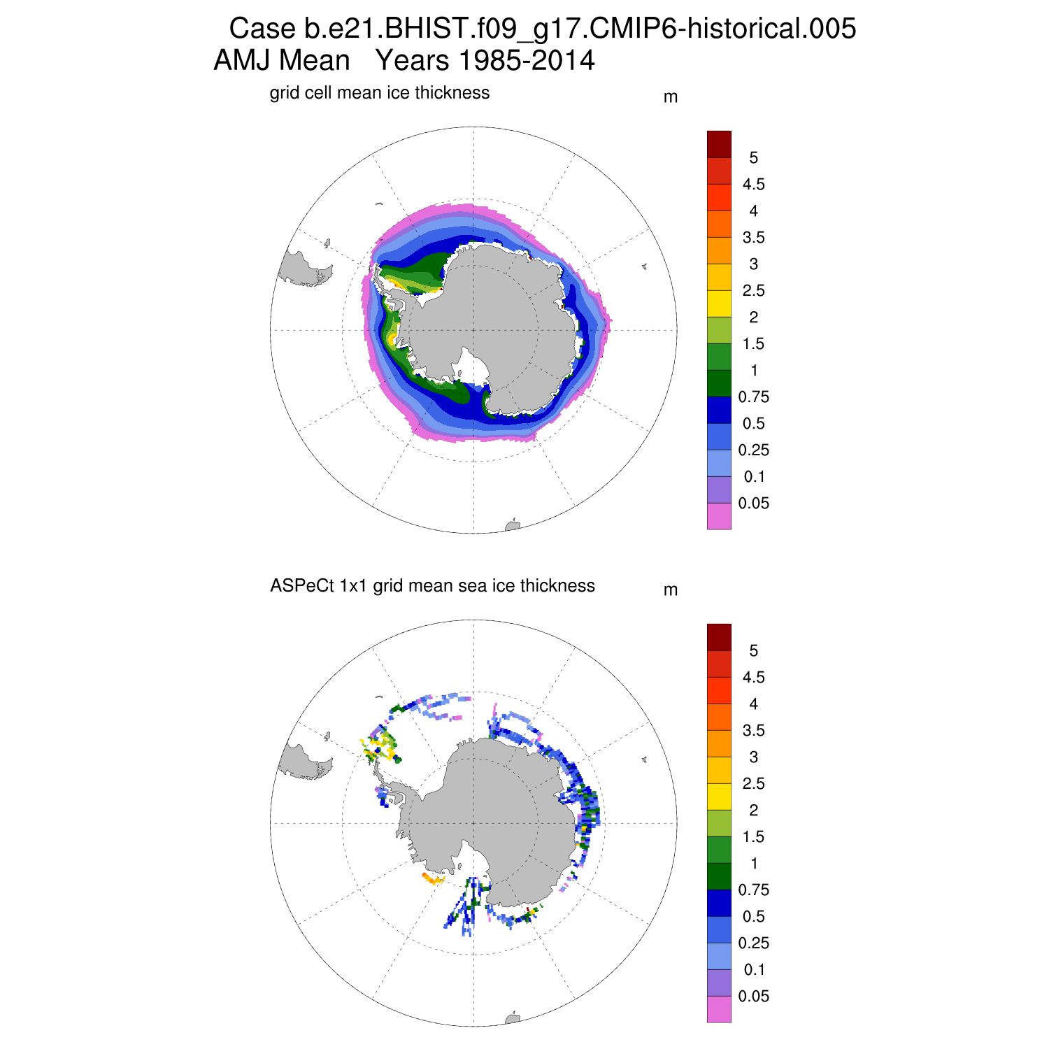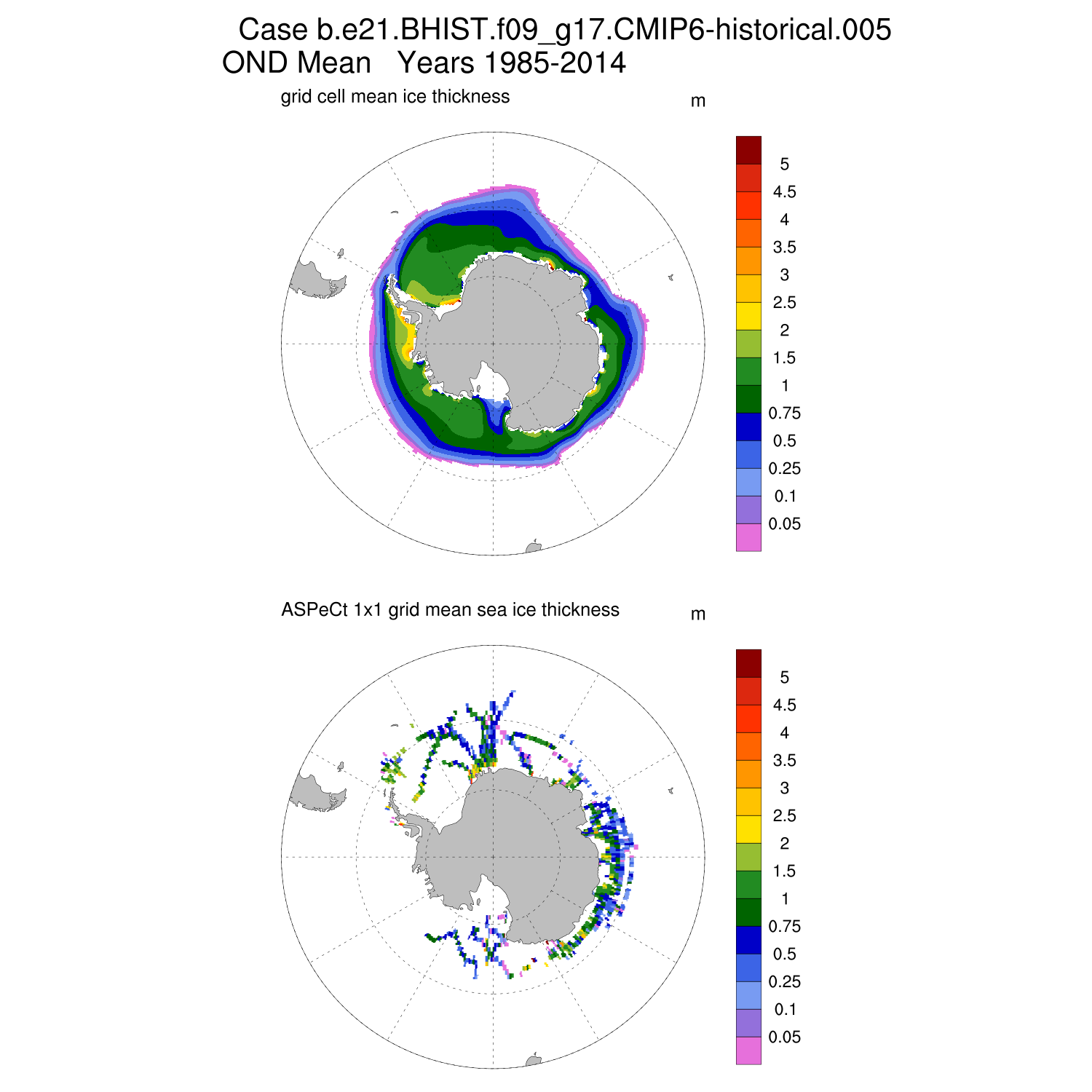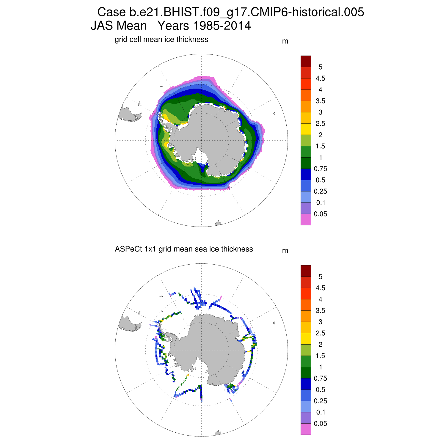 Ice Thickness vs ASPeCt (SH) Contour