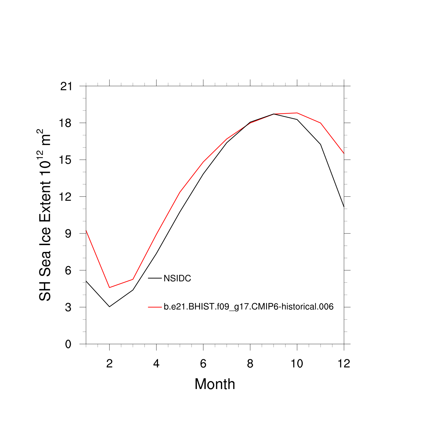 Climatological Monthly Mean Extent vs Obs plot plot